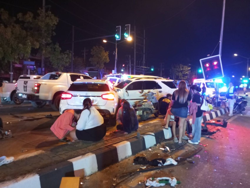 สำหรับสาเหตุการเกิดอุบัติเหตุ เบื้องต้นทรายว่า รถเก๋งสีดำมุ่งหน้ามาจากแยกสนามบิน มาทางคู่ขนานที่จะเลี้ยวซ้ายไปถนนสายลำปาง-แม่ทะ ได้หักเลี้ยวรถไปทางขวา เพื่อมุ่งหน้าเข้าสู่ถนนศรีชุมสายใน ขณะนั้นได้มีรถฟอร์จูนเนอร์สีขาว วิ่งทางตรงสายหลักมาตามทางปกติ ได้เฉี่ยวชนกับรถยนต์เก๋งที่หักเลี้ยวมาตัดหน้าเข้าอย่างจัง จนรถกระเด็นไปคนละทิศทาง รถฟอร์จูนเนอร์สีขาวเสียหลักพุ่งไปชนรถที่จอดติดไฟแด งอยู่ฝั่งขาจะไปแยกสนามบินได้รับความเสียหายจำนวนหลายคัน และมีผู้ได้รับบาดเจ็บจำนวนหลายรายดังกล่าว