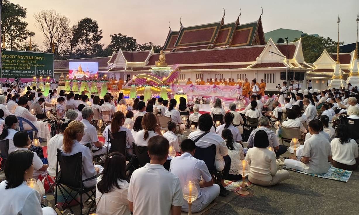 สำหรับกิจกรรมในโครงการธรรมยาตรา ตลอดช่วงวันที่ 15 มกราคมที่ผ่านมา ได้มีพิธีทอดผ้าป่าเพื่อทำนุบำรุงศาสนสถาน ณ วัดโบสถ์บน ต่อมาในวันที่ 16 มกราคม มีพิธีทอดผ้าป่าตามวัดต่าง ๆ ได้แก่ วัดอัมพวัน วัดสิงห์ วัดบางรักใหญ่ และวัดโพธิ์ ขณะที่วันที่ 17 มกราคม คณะศิษยานุศิษย์พระมงคลเทพมุนี ได้อาราธนาพระสังฆาธิการจาก 109 วัด มารับถวายมหาสังฆทานเพื่อบำรุงวัดวาอารามตามเส้นทางมหาปูชนียาจารย์ในเขตจังหวัดนนทบุรี โดยได้รับความเมตตาจากพระเทพวชิรนันทาภรณ์ เจ้าคณะจังหวัดนนทบุรี วัดบัวขวัญ พระอารามหลวง เป็นประธานสงฆ์ และในช่วงเย็นพุทธศาสนิกชนร่วมกันจุดประทีป ณ วัดโบสถ์บน เพื่อถวายเป็นพุทธบูชาและแสดงพลังแห่งความสามัคคี สามารถติดตามข่าวสารกิจกรรมโครงการได้ทาง www.gbnus.com และ เฟซบุ๊กแฟนเพจ สำนักสื่อสารองค์กร วัดพระธรรมกาย สอบถามเพิ่มเติมที่ โทร.02-831-1234