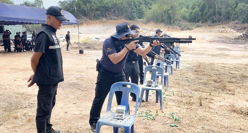 ด้านนายวีระศักดิ์ คงเปี้ยว ปลัดอาวุโสอำเภอคลองใหญ่ ได้ชี้แจงแนวทางการฝึกยิงปืนจริงในภาคสนาม โดยมีหัวหน้าชุดปฏิบัติการที่ 23 บ้านไม้รูด เป็นครูฝึก พร้อมด้วยความร่วมมือจาก กอ.รมน.ภาค 1 สย.3 ตำรวจ และผู้นำท้องที่