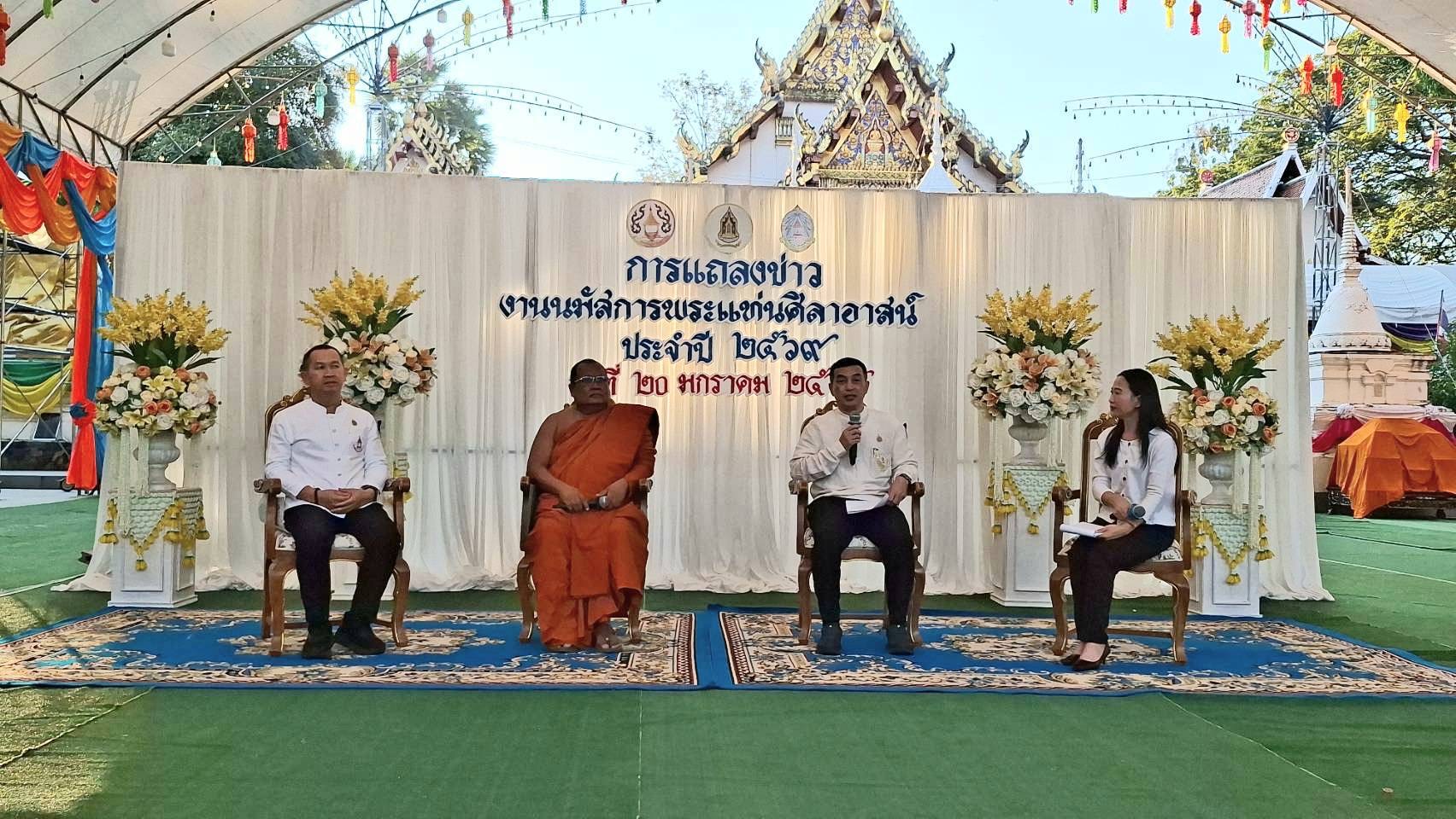 20 มกราคม 2569 ที่ บริเวณมณฑลพิธีด้านหน้าพระวิหารหลวง วัดพระแท่นศิลาอาสน์ พระอารามหลวง อำเภอลับแล จังหวัดอุตรดิตถ์ พระวินัยสาทร เจ้าคณะจังหวัดอุตรดิตถ์ (ธ) เจ้าอาวาสวัดพระแท่นศิลาอาสน์ พระอารามหลวง ประธานฝ่ายสงฆ์ พร้อมด้วยนายสันติ รังษิรุจิ ผู้ว่าราชการจังหวัดอุตรดิตถ์ ประธานฝ่ายฆราวาส และนายสุรพันธ์ เจริญทรัพย์ วัฒนธรรมจังหวัดอุตรดิตถ์ ร่วมกันแถลงข่าวการจัดงานนมัสการพระแท่นศิลาอาสน์ ประจำปี พ.ศ. 2569
