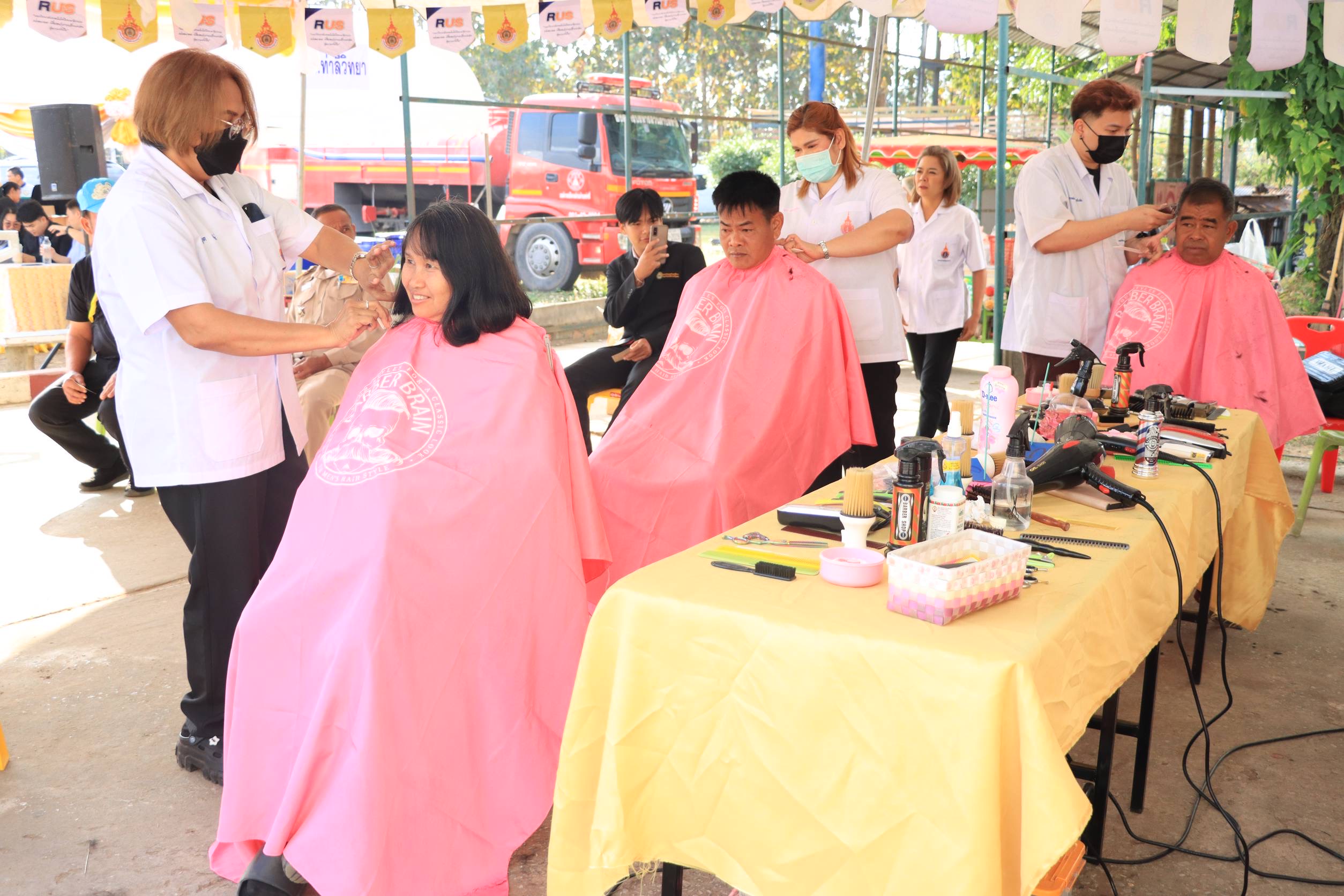 ในการนี้ รองศาสตราจารย์ ดร.ประมุข อุณหเลขกะ อธิการบดีมหาวิทยาลัยเทคโนโลยีราชมงคลสุวรรณภูมิ ได้มอบหมายให้ผู้ช่วยศาสตราจารย์ ดร.ธงชัย อรัญชัย คณบดีคณะครุศาสตร์อุตสาหกรรม พร้อมด้วย ดร.ศิวัตม์ พลอินทร์ รองผู้อำนวยการสถาบันวิจัยและพัฒนา และ ผู้ช่วยศาสตราจารย์เกษม เจนวิไลศิลป์ หัวหน้าสาขาวิชาวิศวกรรมเครื่องกล คณะวิศวกรรมศาสตร์และสถาปัตยกรรมศาสตร์ ศูนย์นนทบุรี เข้าร่วมโครงการและได้มอบรถเข็นสำหรับผู้ป่วย จำนวน 5 คัน ซึ่งเป็นผลงานของนักศึกษาคณะครุศาสตร์อุตสาหกรรม พร้อมทั้งให้บริการตัดผมฟรีทั้งชายและหญิง โดยคณะวิศวกรรมศาสตร์และสถาปัตยกรรมศาสตร์ มีผู้มารับบริการจำนวน 117 คน