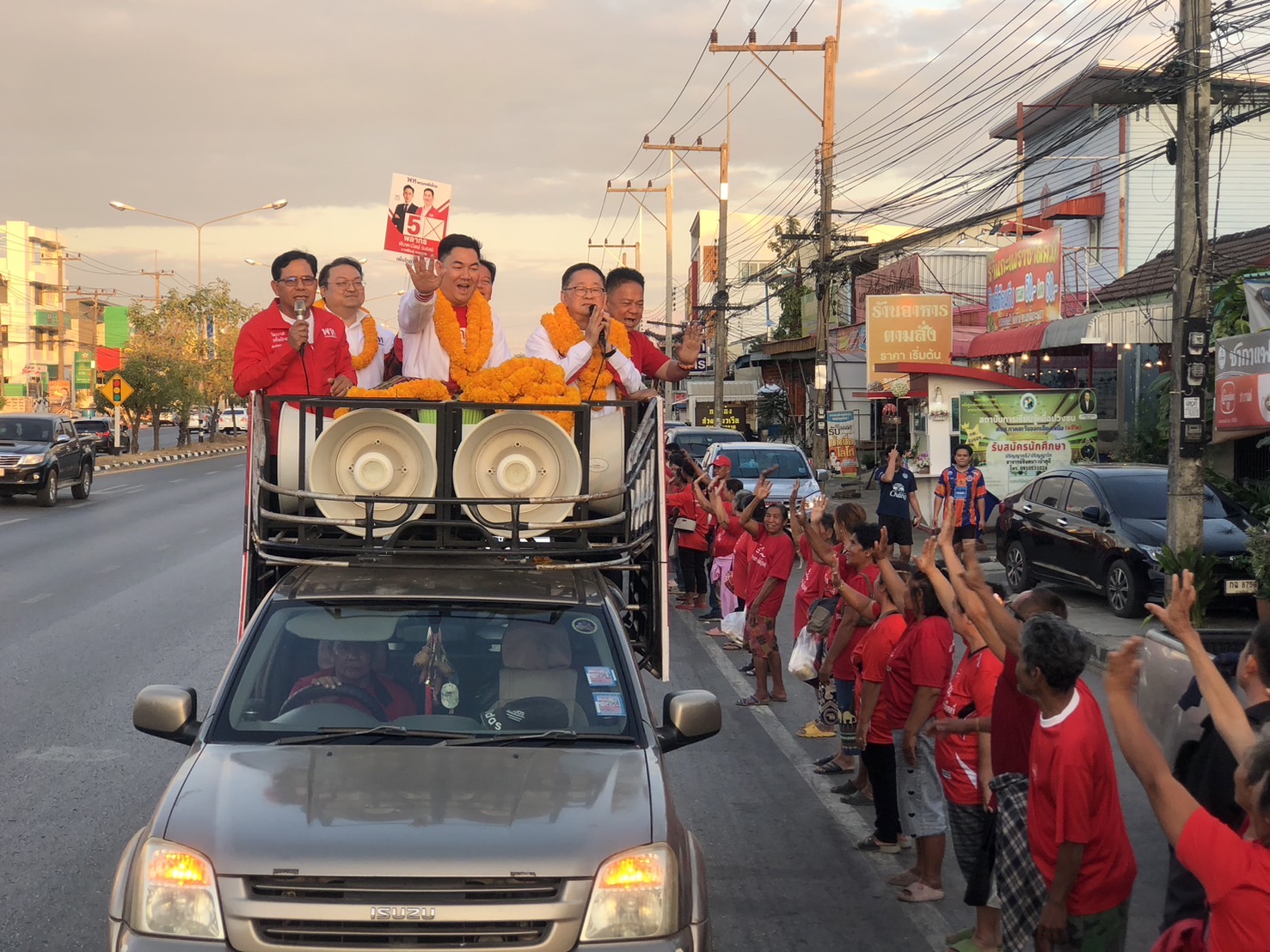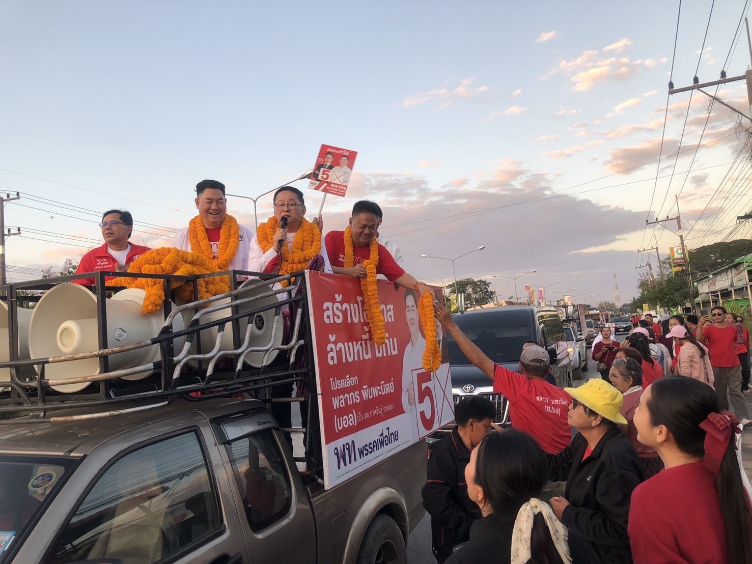 “ประเสริฐ จันทรรองทอง” เลขาธิการพรรคเพื่อไทย ขึ้นรถแห่หาเสียงช่วย “พลากร พิมพะนิตย์” ผู้สมัครสส.กาฬสินธุ์ เขต 2 พรรคเพื่อไทย เบอร์ 5 ท่ามกลางประชาชนชาวอำเภอยางตลาด และอำเภอฆ้องชัย ที่แห่มามอบดอกไม้ให้กำลังใจกันจำนวนมาก พร้อมมั่นใจรักษาแชมป์ เขต 2 ได้แน่นอน