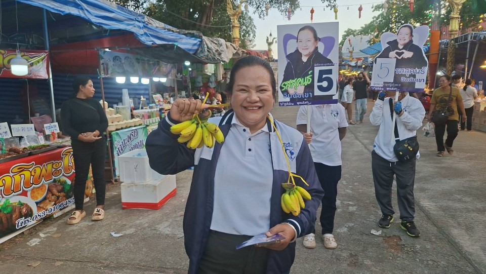 และที่เป็นไฮไลท์ในการลงพื้นที่หาเสียงในครั้งนี้คือ ในขณะที่ ดร.รสสุคนธ์ พร้อมด้วยทีมงานลงพื้นที่หาเสียง ได้พบว่ามีชาวบ้านมาส่งกำลังใจให้กันจำนวนมากและมีชาวบ้านบางกลุ่มได้นำกล้วยไข่มาคล้องคอเป็นมาลัย ให้กับ ดร.รสสุคนธ์ เพื่อเป็นสัญลักษณ์ของการอวยพรให้ชีวิตราบรื่น การทำงาน หรือภารกิจต่างๆ ประสบความสำเร็จอย่างง่ายดาย เหมือนสำนวน “เรื่องกล้วยๆ” หรือ “ปลอกกล้วยเข้าปาก” และเพื่อช่วยสร้างขวัญกำลังใจให้ผู้รับพบเจอแต่ความโชคดีในทุกสถานการณ์