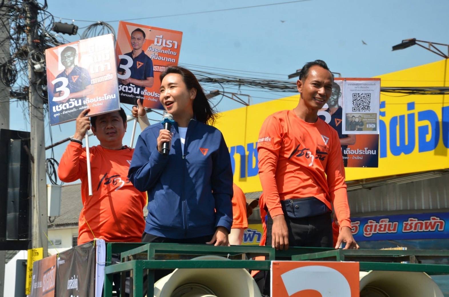 จากนั้น นายเชตวันฯ และน.ส.ศิริกัญญาฯ ร่วมกันขึ้นรถแห่ประชาสัมพันธ์ ไปบนถนนพหลโยธิน ตัดเข้าลำลูกกาซอย 1 ด้านหลังสนามกอล์ฟธูปะเตมีย์ เข้าซอยบุญคุ้ม ถนนเสมาฟ้าคราม ถนนลำลูกกา และปิดท้ายที่ซอยเปียนนท์ โดยมีประชาชนโบกมือให้การต้อนรับ ชูเบอร์ 3 ตลอดสองข้างทาง ยุติกิจกรรมเวลา 12.00 น. เหตุการณ์ทั่วไปปกติ ประชาชนให้การตอบรับค่อนข้างดี มวลชนเข้าร่วมกิจกรรม ประมาณ 500 คน