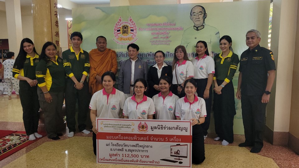 ด้าน นางสาว สกาวรัตน์ สมสกุลรุ่งเรือง เลขาธิการมูลนิธิ กล่าวว่า สำหรับงานวันทำบุญอุทิศส่วนกุศลแด่ “คุณพ่อสมเกียรติ สมสกุลรุ่งเรือง” ผู้ริเริ่มก่อตั้งและอดีตประธานมูลนิธิร่วมกตัญญู ประจำปี 2568 นี้ มูลนิธิร่วมกตัญูญูได้ส่งต่อบุญใหญ่รอบด้าน โดยด้านการศึกษา ในปีนี้มูลนิธิร่วมกตัญญู ได้วางศิลาฤกษ์ อาคารเรียนมูลนิธิร่วมกตัญญู แห่งที่ 39 เป็นอาคารเรียน แบบ สปช. 105/29 ขนาด 2 ชั้น 8 ห้องเรียน 2 ห้องน้ำ และครุภัณฑ์ พร้อมปรับภูมิทัศน์ ให้แก่ โรงเรียนหางดงสังฆราษฎร์อุปถัมภ์ ต.หางดง อ.หางดง จ.เชียงใหม่ รวมมูลค่า 6,000,000 บาท (หกล้านบาทถ้วน) สำหรับทุนการศึกษาที่เข้ารับในวันนี้ประกอบด้วย ได้มอบทุนการศึกษาพระปริยัติธรรมแด่พระภิกษุ-สามเณร ทั้งในเขตกรุงเทพฯ และต่างจังหวัด จำนวน 96 ทุน, มอบทุนการศึกษาให้กับนักเรียน-นักศึกษาที่มีผลการเรียนดีแต่ฐานะยากจน ทุนการศึกษาบุตร-ธิดาของข้าราชการอำเภอบางพลี-องค์การบริหารส่วนตำบลบางพลีใหญ่, บุตร-ธิดาของข้าราชการตำรวจ, บุตร-ธิดาของสื่อมวลชน, บุตร-ธิดาของเจ้าหน้าที่มูลนิธิร่วมกตัญญู, บุตร-ธิดาของอาสาสมัครมูลนิธิร่วมกตัญญูทุกเขต/จังหวัด ตั้งแต่ระดับประถมศึกษาจนถึงระดับปริญญาตรี โดยแบ่ง เป็นระดับประถมศึกษาทุนละ 1,000.- บาท, มัธยมศึกษาทุนละ 1,500.- บาท, ปริญญาตรีทุนละ 3,000.- บาท จำนวน 1,240 ทุน รวมทั้งสิ้น 1,336 ทุน นอกจากนั้นยัง มอบเงินสนับสนุนกิจกรรมโรงเรียน-ทุนอาหารกลางวัน ระยะเวลา 1 ปีและอุปกรณ์การเรียน-การกีฬา ให้กับโรงเรียนในพื้นที่กรุงเทพฯ และต่างจังหวัด จำนวน 72 โรงเรียน มอบเครื่องคอมพิวเตอร์ แบบตั้งโต๊ะ จำนวนรวม 42 เครื่อง มอบเครื่องปริ้นเตอร์ จำนวน 1 เครื่อง โรงเรียนที่ขาดแคลน 7 โรงเรียน และ สพฐ. 1 หน่วยงาน มอบอุปกรณ์ครุภัณฑ์เครื่องครัว ให้กับ 1 โรงเรียน