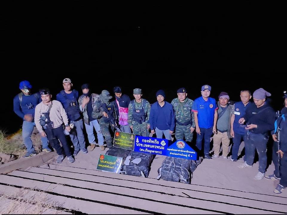 ต่อมา เวลาประมาณ 15.00 น. ของวันเดียวกัน ได้จัดชุดลาดตระเวนทางบกทำการลาดตระเวนซุ่มเฝ้าตรวจในบริเวณพื้นพื้นที่ บ.ป่งขาม ต.ป่งขาม อ.หว้านใหญ่ จ.มุกดาหาร กระทั่งเวลาประมาณ 23.30 น. ชุดลาดตะเวนฯ ตรวจพบเรือต้องสงสัยมีทิศทางแล่นมาจากฝั่ง สปป.ลาว เข้ามายังราชอาณาจักรไทย และตรวจพบคนบนเรือลำดังกล่าวประมาณ 3 คน โดยเมื่อเรือลำดังกล่าวเข้าเทียบแล้ว กลุ่มคนดังกล่าวได้ช่วยกันลำเลียงวัตถุคล้ายกระสอบต้องสงสัยจากเรือขึ้นสู่ฝั่งไทย เห็นดังนั้น ชุดลาดตระเวนฯ จึงเข้าแสดงตัวเป็นเจ้าหน้าที่ นรข. เพื่อขอเข้าตรวจสอบ เมื่อกลุ่มคนในข้างต้นทราบว่าเป็นเจ้าหน้าที่ นรข. จึงได้ทิ้งของกลางและเรือ กระโดดลงแม่น้ำโขงหลบหนีไปได้ หลังจากนั้นเจ้าหน้าที่จึงเข้าตรวจสอบพื้นที่ ในเบื้องต้นพบว่าเป็นกระสอบห่อหุ้มด้วยถุงพลาสติกสีดำ จำนวน 3 กระสอบ กระจายอยู่บริเวณริมฝั่งแม่น้ำโขงและมีกระสอบลักษณะเดียวกันวางอยู่บนเรืออีก จำนวน 4 กระสอบ เห็นดังนั้นชุดลาดตระเวนฯ จึงรายงานให้ผู้บังคับบัญชาทราบ รวมทั้งประสานหน่วยงานความมั่นคงในพื้นที่ เพื่อร่วมกันตรวจสอบวัตถุต้องสงสัยนั้น ซึ่งจากการตรวจสอบเบื้องต้น พบว่าเป็นยาเสพติดให้โทษประเภท 1 (ยาบ้า) จำนวน 7 กระสอบ ประมาณ 2,800,000 เม็ด และเรือกีบพร้อมเครื่องยนต์ติดท้าย จำนวน 1 ลำ จึงได้ทำการตรวจยึด และนำของกลางทั้งหมดมาที่สถานีเรือมุกดาหาร เพื่อทำการตรวจสอบโดยละเอียดต่อไป