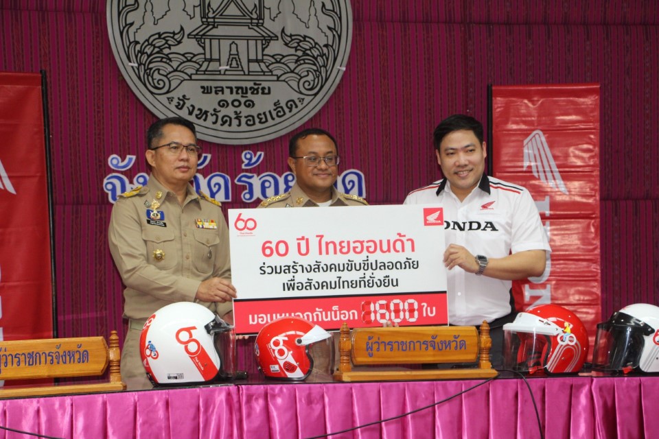 1 กันยายน 2568 นายชัชวาลย์ เบญจสิริวงศ์ ผู้ว่าราชการจังหวัดร้อยเอ็ด เป็นประธานในพิธีรับมอบหมวกกันน็อก ภายใต้โครงการ “60 ปี ไทยฮอนด้า ขับขี่ปลอดภัย เพื่อสังคมไทยที่ยั่งยืน” ซึ่งจัดโดย บริษัท ไทยฮอนด้า จำกัด ร่วมกับร้านผู้จำหน่ายรถจักรยานยนต์ฮอนด้า โดยมี นายสุวรรธณ์ เข็มธนเพ็ชร รองผู้ว่าราชการจังหวัดร้อยเอ็ด พร้อมด้วยหัวหน้าส่วนราชการ นักเรียน และภาคีเครือข่าย เข้าร่วมในพิธี ณ ห้องประชุมชั้น5 ศาลากลางจังหวัดร้อยเอ็ด จังหวัดร้อยเอ็ด