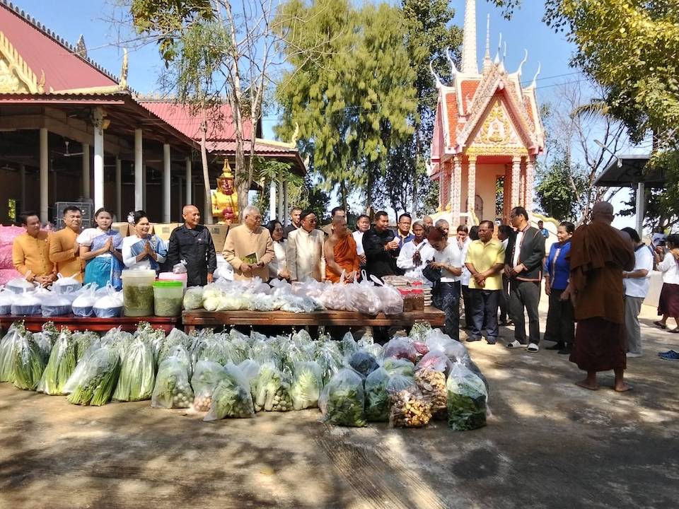 โดยมี พันเอก กัญญณัต ไชยโอชะ ผู้บังคับหน่วยเฉพาะกิจกรมทหารพรานที่ 23 เป็นผู้รับมอบประกอบด้วย อุปกรณ์ก่อสร้างสุขา 50 ที่ ขนมจีน 250 กิโลกรัมพร้อมน้ำยา ข้าวเหนียวนึ่ง 5 กล่องโฟม ไก่ทอด 500 ชิ้น แจ่วบอง 20 กิโลกรัม หอมแดง 10 กระสอบปุ๋ย เพื่อนำไปเป็นขวัญกำลังใจหนุนทหารพรานที่ทำหน้าที่รักษาอธิปไตยแนวชายเขาพระวิหารและจังหวัดอุบลราชธานีด้วย นอกจากนี้ยังได้มอบเงินสมทบในการทำสนามฟุตซอลให้แก่สถานนีตำรวจภูธรยางชุมน้อย จำนวน 30,000 บาท โดยมีพันตำรวจเอก ภูเพชร ลีเลิศ ผู้กำกับการสถานีตำรวจภูธรอำเภอยางชุมน้อย เป็นผู้รับมอบ และเพื่อเป็นการสืบทอดวัฒนธรรมท้องถิ่น อำเภอยางชุมน้อย จ.ศรีสะเกษ ต่อไป