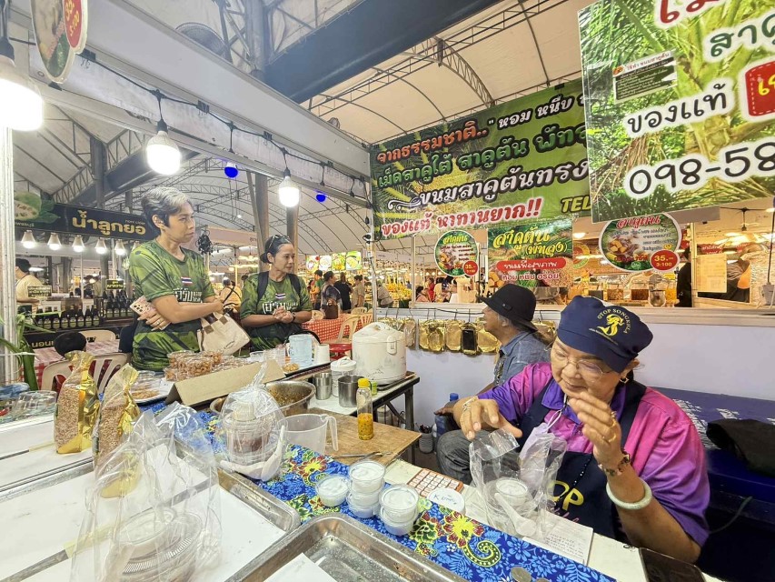 น.ส.ณัฏฐ์นลิน เชี่ยวชาญธนกิจ ผู้บริหาร บจก.เฮิร์บแลนด์ โปรดักส์ และคณะ ได้พูดคุยแลกเปลี่ยนความรู้เกี่ยวกับต้นสาคูกับนายชาญวิทย์ ดารามิตร ปราชญ์ท้องถิ่นและกูรูเรื่องต้นสาคูจากจังหวัดพัทลุง ที่ได้เดินทางมาออกบูธนำเสนอและจำหน่ายเม็ดสาคูต้น “สาคูใต้พัทลุง ของแท้ หาทานยาก” ในงานของดีชาวแดนใต้ OTOP ทั่วไทย และ SMEs ร่วมใจสู่เมืองระยอง ที่โดมแอร์สนามกีฬาจังหวัดระยอง ซึ่งจัดขึ้นโดยโอท็อปเพื่อสังคม และกรมการพัฒนาชุม กระทรวงมหาดไทย