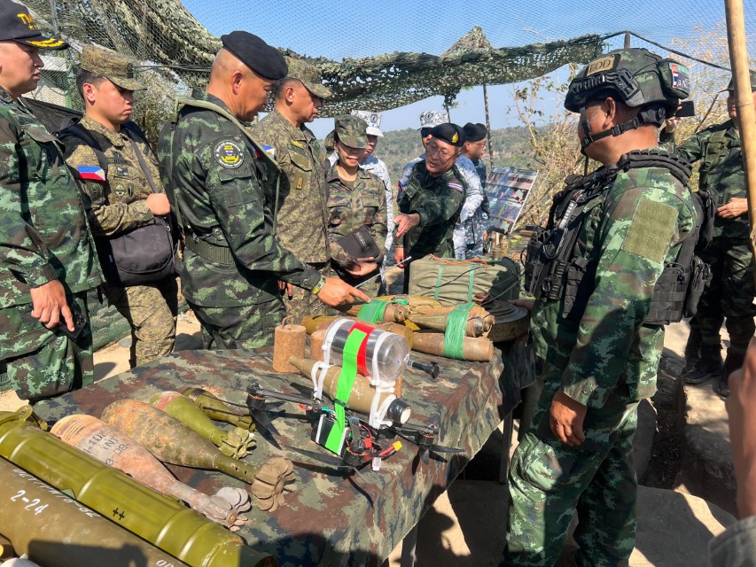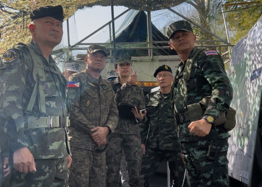 หลังจากนั้น พลเอก Romeo S.Brawner Jr. เสนาธิการทหารกองทัพฟิลิปปินส์และได้ตรวจพื้นที่ ภูมะเขือ ซึ่งเป็นพื้นที่ยุทธศาสตร์ด้านภูมิประเทศ รวมถึงพื้นที่ชุมชนในตำบลเสาธงชัย อำเภอกันทรลักษ์ ที่ได้รับผลกระทบจากการที่ฝ่ายกัมพูชาใช้อาวุธจรวดหลายลำกล้อง BM-21 ยิงเข้ามาในเขตอธิปไตยของไทย ส่งผลให้บ้านเรือนประชาชนได้รับความเสียหายอย่างรุนแรง และสูญเสียทรัพย์สินและที่อยู่อาศัย ตลอดจนมีผู้เสียชีวิต สะท้อนให้เห็นถึงผลกระทบด้านมนุษยธรรมจากการใช้กำลังทางทหารต่อเป้าหมายพลเรือนอย่างชัดเจน นอกจากนี้ คณะเสนาธิการทหารกองทัพฟิลิปปินส์ยังได้พิจารณาภูมิประเทศตลอดแนวชายแดน เพื่อรับทราบมิติทางยุทธศาสตร์ โดยเฉพาะข้อเท็จจริงที่ฝ่ายกัมพูชาถูกตั้งข้อสังเกตว่า ใช้พื้นที่ ปราสาทพระวิหาร ซึ่งเป็นแหล่งมรดกโลก เป็นที่ตั้งกำลังทหาร จุดสะสมอาวุธ และฐานยิงโจมตีเข้ามายังฝั่งไทย พร้อมตรวจดูวัตถุพยานที่ตรวจเก็บกู้ได้หลังสถานการณ์คลี่คลาย อาทิ ซากกับระเบิดชนิดต่าง ๆ โดรนพลีชีพ (FPV) และหัวรบวัตถุระเบิด