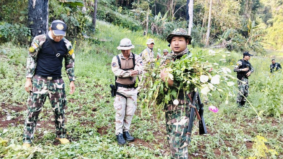 11 กุมภาพันธ์ 2569 นายวีระพงศ์ รัตนศรี นายอำเภอปางมะผ้า อ.ปางมะผ้า จ.แม่ฮ่องสอน ได้มอบหมายให้ นายเข็มก์ หงส์เจ็ด ปลัดอาวุโส อ.ปางมะผ้าฯ สนธิกำลังกับ ชุดสายตรวจเขตรักษาพันธุ์สัตว์ป่าลุ่มน้ำปาย โดยนายไกรศร บัวบาน หัวหน้าชุด , เจ้าหน้าที่ตำรวจภูธรสภ.ปางมะผ้า และ เจ้าหน้าที่ทหาร ร้อย.ร.722 เข้าทำการตัดทำลายไร่ฝิ่น บริเวณพื้นที่การเกษตรระหว่าง บ้านหนองผาจ๊ำ – บ้านกึ๊ดสามสิบ หมู่ 4 ต.สบป่อง อ.ปางมะผ้า จ.แม่ฮ่องสอน โดยพบว่ามีการปลูกฝิ่นแซมในแปลงปลูกผักกาด คิดเป็นเนื้อที่ประมาณ 30 ตารางเมตร จึงได้ถอนตัดทำลายและเผาทิ้ง คิดเป็นน้ำหนักต้นฝิ่นประมาณ 3.20 กก.