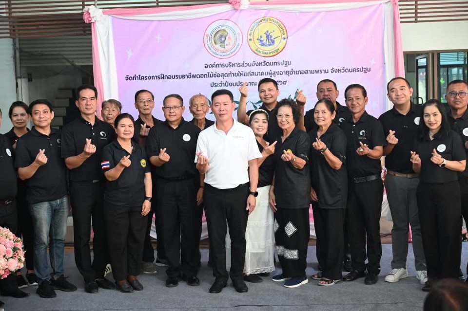 12 กุมภาพันธ์ 2569 นายจิรวัฒน์ สะสมทรัพย์ นายก อบจ.นครปฐม เป็นประธานในพิธีเปิดโครงการฝึกอบรมอาชีพดอกไม้ช่อสุดท้ายให้แก่สมาคมผู้สูงอายุอำเภอสามพราน จังหวัดนครปฐม พร้อมด้วย ประธานสภา, รองประธานสภา, สมาชิกสภา, หัวหน้าส่วนราชการ และเจ้าหน้าที่ อบจ.นครปฐม ณ สมาคมผู้สูงอายุอำเภอสามพราน จ.นครปฐม โดย อบจ.นครปฐม ได้ให้การสนับสนุนการจัดทำโครงการดังกล่าว เพื่อสร้างทักษะอาชีพ เพิ่มทางเลือกในการประกอบอาชีพให้แก่ผู้สูงอายุ เพื่อให้ได้ใช้เวลาว่างให้เกิดประโยชน์ เพิ่มรายได้ให้แก่ตนเองและครอบครัวได้อีกทางหนึ่ง