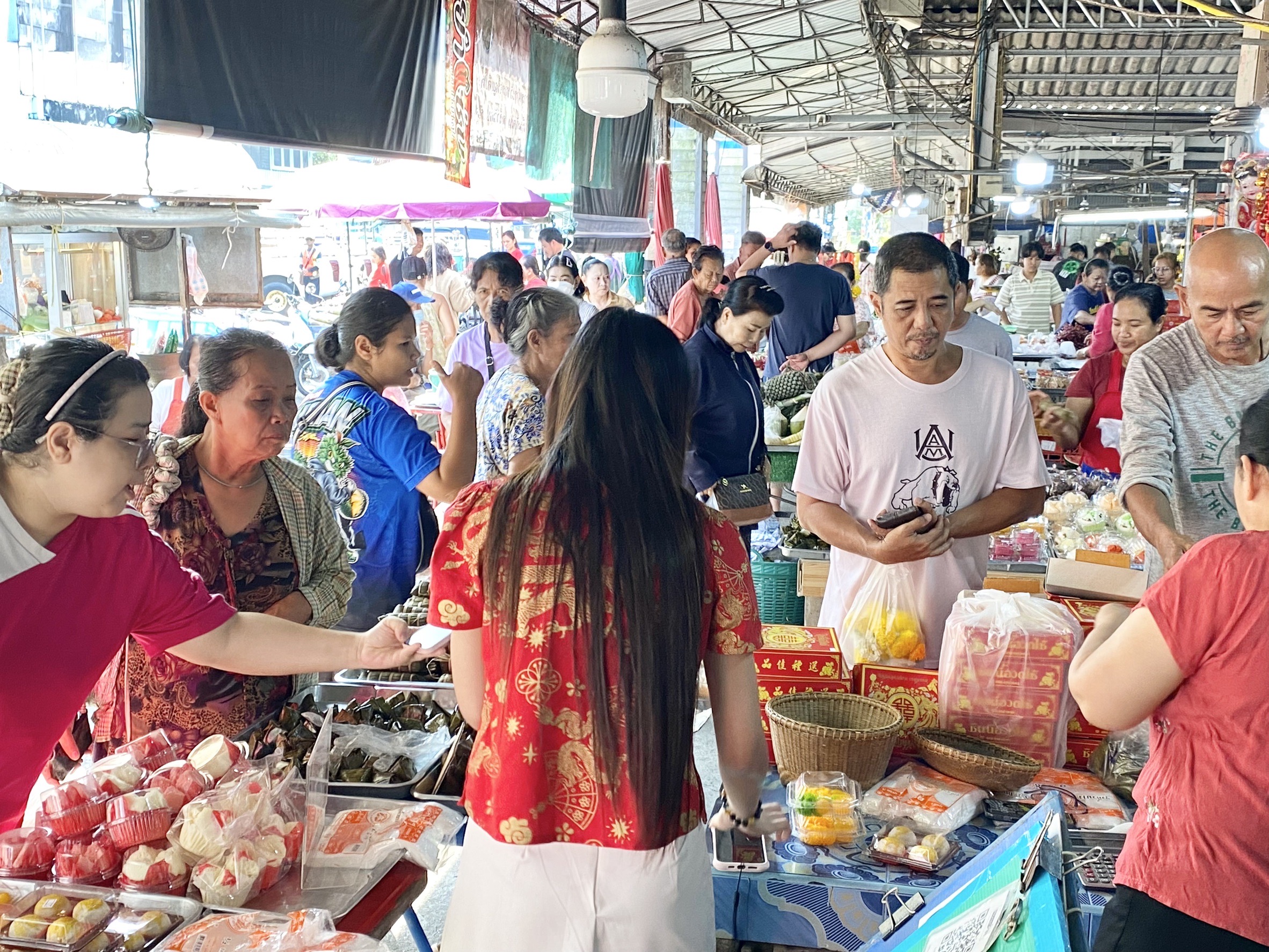 15 กุมภาพันธ์ 2569 ที่บริเวณตลาดสดเทศบาลตําบลคลองใหญ่ บรรยากาศวันจ่ายเทศกาลตรุษจีน ซื้อของไหว้ก่อนเทศกาลตรุษจีน ที่บริเวณภายในตลาดสดเทศบาลตําบลคลองใหญ่ อ.คลองใหญ่ จ.ตราด ซึ่งมีคนไทยเชื้อสายจีนทยอยออกมาจับจ่ายซื้อของเนืองแน่นเต็มตลาดสด ซึ่งมีการจับจ่ายซื้อของเส้นไหว้ประเภท หมู เป็ด ไก่ และผลไม้มงคล เพื่อเตรียมไหว้บรรพบุรุษในเทศกาลตรุษจีน ซึ่งราคาสินค้าเพิ่มขึ้นเป็นบางอย่างแต่ไม่สูงมากนัก เพราะเศรษฐกิจซบเซา และในช่วงนี้กระทบปัญหาชายแดนด้วย ยังมีสินค้าต่างๆมาวางขายด้านในตลาดสดเป็นจํานวนมากอีกด้วย ทําให้พ่อค้าแม่ค้าในตลาดสดคลองใหญ่บางรายต้องใช้ผู้ช่วยขายดีเป็นบางอย่าง เช่น หมู เป็ด ไก่ ขายดีซึ่งทำให้ราคาของสดในท้องตลาดมีราคาไม่สูงมากนักส่วนราคาผลไม้ เช่น องุ่นแดงกิโลละ 160 บาท แก้วมังกรกิโลละ 80 บาท แอปเปิ้ลลูกละ 10 บาท เป็นต้น