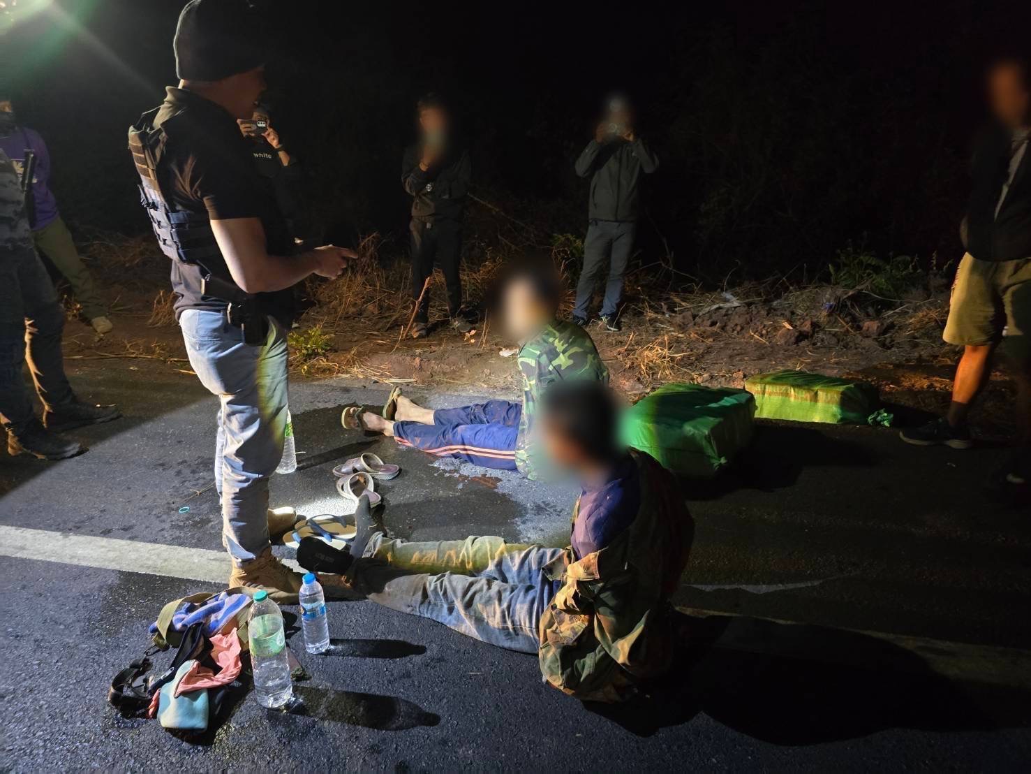 จึงได้ทิ้งของกลางวิ่งหลบหนี เจ้าหน้าที่ นรข.จึงรุดเข้าควบคุมตัวผู้ต้องสงสัยในข้างต้นและสามารถควบคุมไว้ได้ จำนวน 2 คน ทราบชื่อในภายหลัง คือ 1. ท้าวเตียงคำ พรมโสพา 2. ท้าวบุนเลิด พรมโสพา หลังจากนั้น เจ้าหน้าที่จึงเข้าตรวจสอบพื้นที่ในเบื้องต้น พบว่าเป็นยาเสพติดให้โทษประเภทที่ 1 (ยาบ้า) บรรจุอยู่ภายในกระสอบ จำนวน 3 กระสอบ เจ้าหน้าที่จึงแจ้งข้อกล่าวหาแก่ ท้าวเตียงคำฯ และ ท้าวบนเลิดฯ ว่าร่วมกันครอบครองยาเสพติดให้โทษประเภทที่ 1 (ยาบ้า) โดยการมีไว้เพื่อจำหน่ายโดยไม่ได้รับอนุญาตอันเป็นการกระทำเพื่อการค้า ก่อให้เกิดการแพร่กระจายในหมู่ประชาชน และทำให้เกิดผลกระทบต่อความมั่นคงของรัฐ หรือความปลอดภัยของประชาชนทั่วไป กับทั้งได้ดำเนินการแจ้งสิทธิให้ผู้ต้องหาทราบแล้ว