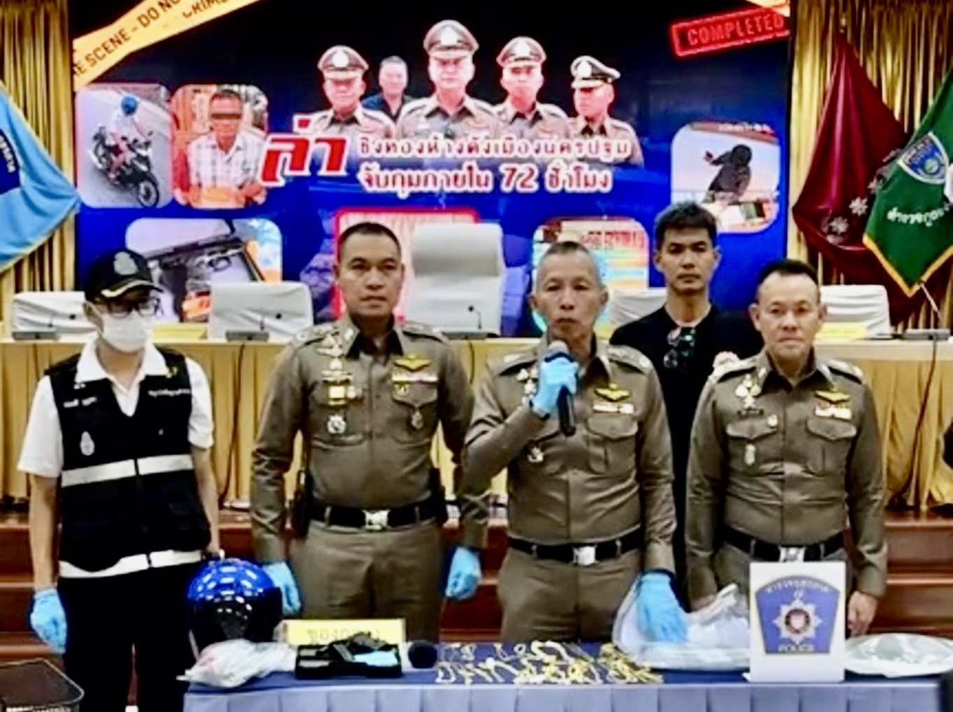 ตำรวจภาค 7 ตำรวจนครปฐม ใช้เวลาไม่ถึง 3 วัน ตามรวบผู้ต้องหาควงปืน ชิงทรัพย์ร้านทอง ภายในห้างดังนครปฐม ได้ของกลางคืนครบ 23 เส้น หลังก่อเหตุผู้ต้องหาหลบหนีกบดานเข้าบ้านพักย่านบ้านแพ้ว