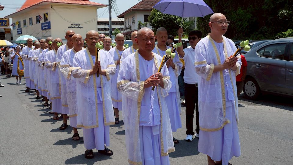ต่อมาเวลา 12.00 น. มีพิธีแห่นาคเข้าสู่อุโบสถ โดยได้รับเมตตาจาก พระธรรมสุธี ที่ปรึกษาเจ้าคณะภาค 1 เจ้าอาวาสวัดหัวลำโพง พระอารามหลวง เป็นพระอุปัชฌาย์ โดยมีคณะญาติ พ่อนาคแม่นาค ข้าราชการ พยาบาล ข้าราชการครู เข้าร่วมขบวนแห่ โดยในการนี้ พระวชิรคณาทร “เจ้าคุณแจ้” เจ้าอาวาสวัดบางพลีใหญ่กลาง ประธานจัดงาน จัดเต็มในการโปรยทาน กว่า 300,000 บาท ให้กับญาติโยมที่มาร่วมบุญ บรรยากาศเป็นไปด้วยความคึกคัก