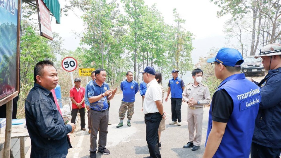 จากนั้น คณะได้ลงพื้นที่ตรวจเยี่ยมให้กำลังใจชุดอาสาดับไฟป่าในพื้นที่ตำบลป่าตุ้ม พร้อมมอบสิ่งของสนับสนุนการปฏิบัติงาน ณ จุดคัดกรองคนเข้า-ออกป่า บริเวณปากทางเข้าบ้านปางฟาน เพื่อเสริมขวัญกำลังใจให้กับเจ้าหน้าที่และอาสาสมัครแนวหน้าที่ปฏิบัติภารกิจอย่างเข้มแข็ง ซึ่งสถานการณ์ไฟป่าและหมอกควันยังคงต้องเฝ้าระวังอย่างต่อเนื่อง โดยทุกภาคส่วนยังคงบูรณาการกำลังในการป้องกันและควบคุมไฟป่าอย่างเต็มที่ ผลการปฏิบัติงานเป็นไปด้วยความเรียบร้อย