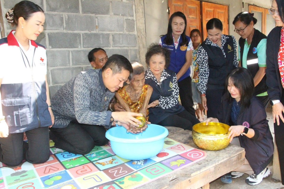 บรรยากาศในการลงพื้นที่เป็นไปด้วยความอบอุ่น ผู้สูงอายุทั้ง 3 รายมีสีหน้ายิ้มแย้ม แจ่มใส และให้การต้อนรับคณะอย่างเป็นกันเอง โดยคณะได้ร่วมกิจกรรมรดน้ำดำหัว และผูกข้อมือเพื่อความเป็นสิริมงคล เนื่องในช่วงเทศกาลสงกรานต์ สร้างขวัญกำลังใจให้แก่ผู้สูงอายุและครอบครัวอย่างดียิ่ง