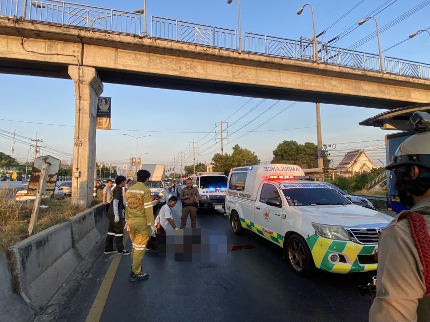 ช่วงเย็น วันที่ 10 เมษายน 2569 ร.ต.ท.หญิง วสุกัญญา ธชีพันธ์ รองสารวัตรสอบสวน สภ.ปากคลองรังสิต ได้รับแจ้งเหตุมีบุคคลกระโดดจากสะพานลอยลงมาเสียชีวิต บริเวณสะพานลอยหน้าศูนย์ซ่อมสร้างรถยนต์ทหาร ถนนซ่อมสร้างมุ่งหน้าปทุมธานี ตำบลบ้านใหม่ อำเภอเมือง จังหวัดปทุมธานี หลังรับแจ้งจึงรุดไปตรวจสอบที่เกิดเหตุพร้อมด้วยแพทย์จากสถาบันนิติวิทยาศาสตร์ กระทรวงยุติธรรม และอาสาสมัครมูลนิธิร่วมกตัญญู