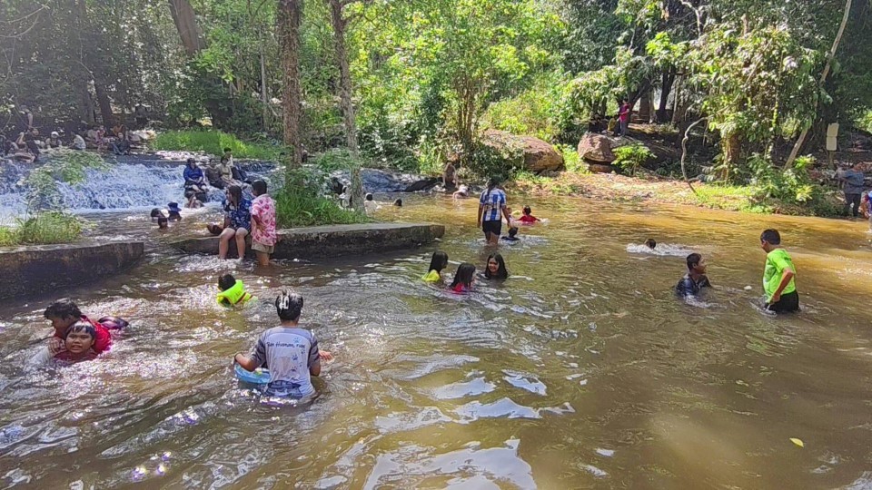 วันหยุดยาว เทศกาลสงกรานต์ บรรยากาศเป็นไปอย่างคึกคัก นักท่องเที่ยวทั้งในและนอกพื้นที่ต่างพาครอบครัว อุ้มลูกจูงหลาน หอบเสื่อ ห่วงยาง และอุปกรณ์เล่นน้ำ เดินทางมาปักหลักพักผ่อน เล่นน้ำคลายร้อน ท่ามกลางธรรมชาติอันร่มรื่นและสายน้ำใสเย็นที่ยังคงไหลตลอดแม้ในฤดูแล้ง นับเป็นจุดเด่นที่ทำให้น้ำตกแห่งนี้กลับมามีชีวิตชีวาอีกครั้ง