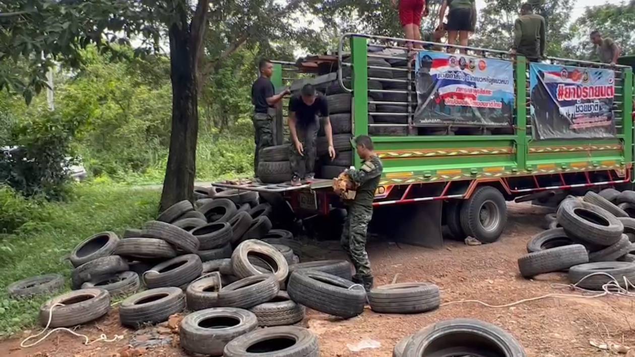 9 กันยายน 2568 ที่ ฐานปฏิบัติการ ในเขตอุทยานแห่งชาติเขาพระวิหาร ชายแดนไทย-กัมพูชา อ.กันทรลักษ์ จ.ศรีสะเกษ พระอาจารย์ ภาคภูมิ ภทฺทโก จากวัดป่าดอนโมง จ.หนองบัวลำพู ร่วมกับ พระอาจารย์อธิวัฒน์ อธิปญฺโญ วัดศรีนิลวนาราม จ.เลย พร้อมคณะคณะจิตอาสาจากจังหวัดนครเลย และหนองบัวลำพู ร่วมกันจัดกิจกรรมโครงการ ยางรถยนต์ช่วยชาติ เพื่อเป็นกำลังใจให้ทหารที่เสียสละพลีชีพเพื่อแผ่นดินไทย และประชาชนชาวไทย