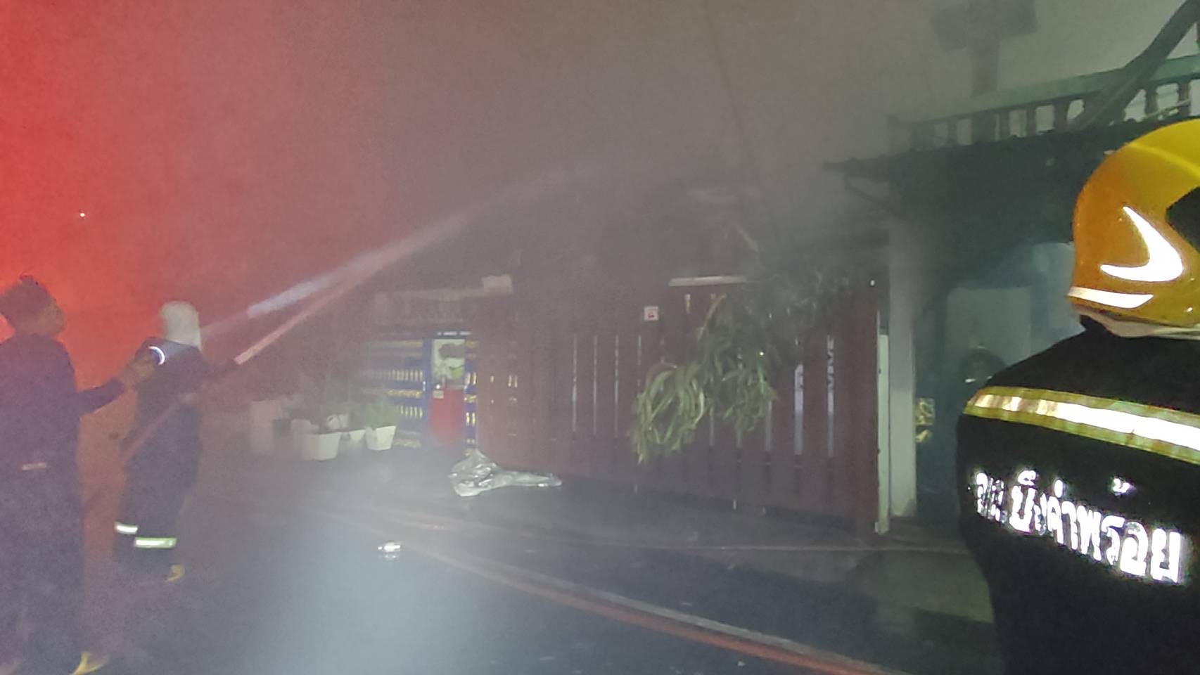 ที่เกิดเหตุพบเป็นบ้าน 2 ชั้น ปลูกติดกัน 2 หลัง เลขที่ 292/1 และ 292/2 ลักษณะเป็นบ้านครึ่งปูนครึ่งไม้ (ชั้นล่างเป็นปูน ชั้นบนเป็นไม้) พบแสงเพลิงกำลังลุกไหม้ตัวบ้านอย่างรุนแรง เจ้าหน้าที่ดับเพลิงจึงเร่งระดมฉีดน้ำสกัดกั้นเพลิง เพื่อไม่ให้ลุกลามไปยังบ้านเรือนข้างเคียง โดยใช้เวลาประมาณ 30 นาที เพลิงจึงสงบลง จากการตรวจสอบพบว่าบ้านทั้งสองหลังถูกเพลิงไหม้ได้รับความเสียหายทั้งหมด นอกจากนี้ ยังพบว่ามีผู้ป่วยที่พักอาศัยอยู่ในบ้านใกล้เคียงเกิดอาการสำลักควันไฟ เจ้าหน้าที่มูลนิธิร่วมกตัญญูจึงเร่งให้การช่วยเหลือและนำตัวส่งโรงพยาบาลใกล้เคียงอย่างเร่งด่วน