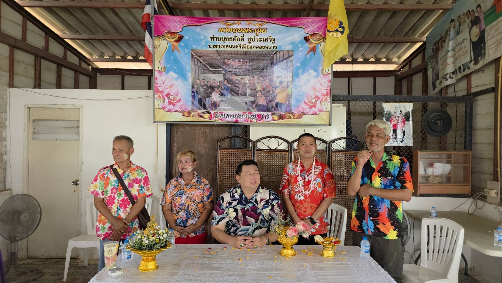 19 เมษายน 2569 ณ ศาลาประชาคม ซอยบงกช 16 ต.คลองสอง อ.คลองหลวง จ.ปทุมธานี นายยุทธศักดิ์ ชูประเสริฐ นายกเทศมนตรีเมืองคลองหลวง พร้อมด้วย นางสาวพรปริญญา ศรีจันทร์ (สจ.ลูกโป่ง) สมาชิกสภา อบจ.ปทุมธานี และคณะผู้บริหาร ลงพื้นที่จัดกิจกรรมรดน้ำดำหัวขอพรผู้สูงอายุเนื่องในเทศกาลสงกรานต์ พร้อมมอบถุงยังชีพเพื่อบรรเทาความเดือดร้อน ท่ามกลางบรรยากาศสุดชื่นมื่นหลังทราบข่าวดีเรื่องการชนะคดีที่ดิน