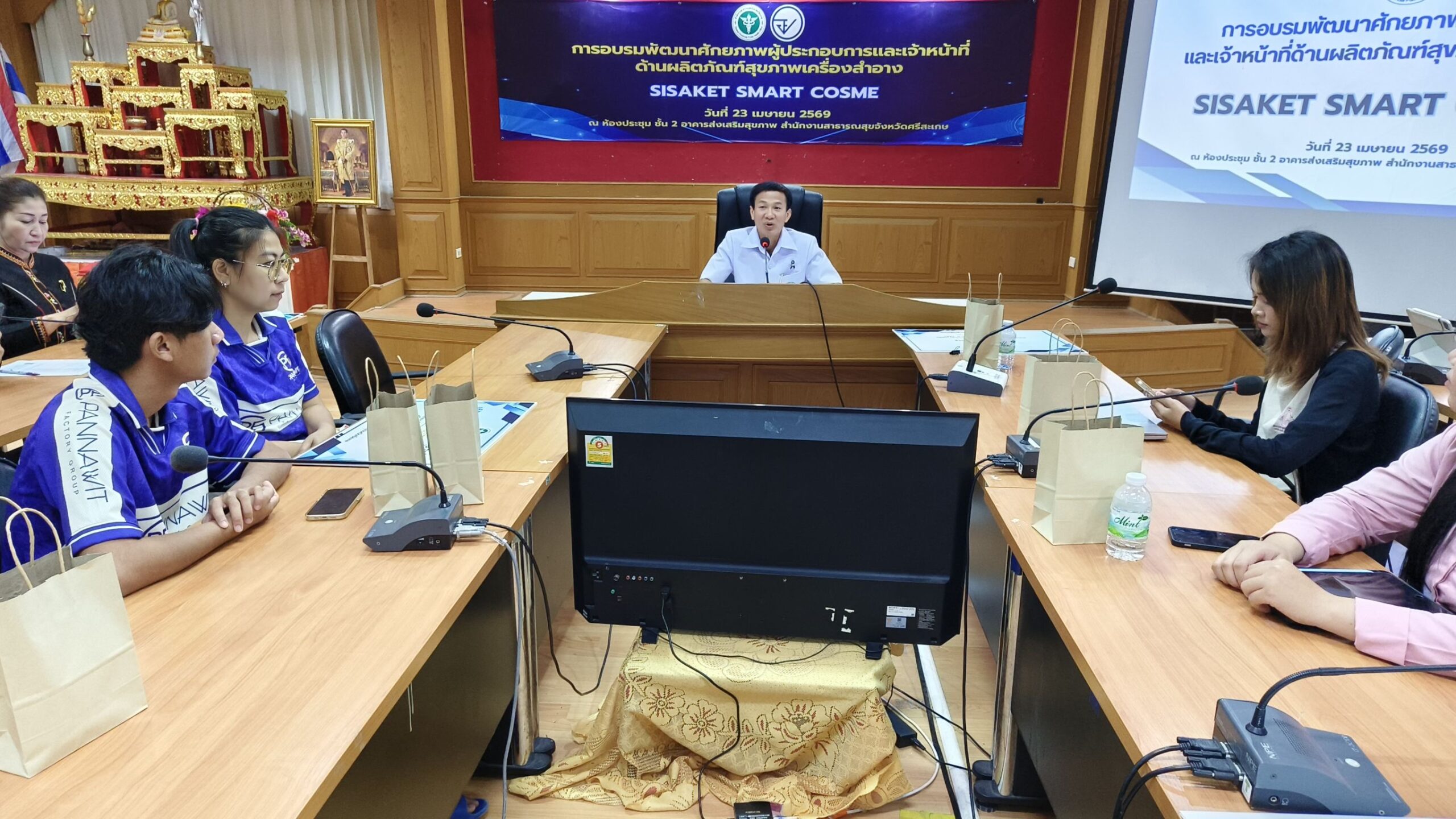 23 เมษายน 2569 ณ ท้องประชุมชั้น 2 อาคารส่งเสริมสุขภาพ สำนักงานสารารณสุขจังหวัดศรีสะเกษ ภก.ไพฑูรย์ แก้วภมร รองนายแพทย์สาธารณสุขจังหวัดศรีสะเกษ เป็นประธานเปิดการอบรมพัฒนาศักยภาพผู้ประกอบการและเจ้าหน้าที่ด้านผลิตภัณฑ์สุขภาพเครื่องสำอาง ประจำปี2569 SISAKET SMART COSME โดยมีสถานที่จำหน่ายและสถานที่ผลิตเครื่องสำอาง ในจังหวัดศรีสะเกษ ส่งเจ้าหน้าที่และบุคคลากรประจำร้านเข้าร่วมอบรมจำนวน 13 แห่ง ทั้งสิ้นประมาณ 100 คน ทั้งนี้เพื่อความปลอดภัยผู้บริโภคและยกระดับขีดความสามารถผู้ประกอบการ ด้านหลัก คือ SMART ส่งเสริมและพัฒนาผู้ประกอบการให้มีมาตรฐานการผลิตที่ดี ถูกต้องครบถ้วน และสามารถยกระดับผลิตภัณฑ์สู่ตลาดทั้งในประเทศและต่างประเทศเพื่อเพิ่มประสิทธิภาพการทำงาน เพื่อเพิ่มความปลอดภัยแก่ประชาชนและเพื่อเป็นการส่งเสริมพัฒนาศักภาพและขวัญกำลังกำลังใจแก่ผู้ประกอบการในการพัฒนาผลิตภัณฑ์ให้เกิดความปลอดภัยสูงสุดต่อผู้บริโภค และเพื่อสร้างขวัญกำลังใจให้แก่ผู้ประกอบการและเจ้าหน้าที่ต่อไป
