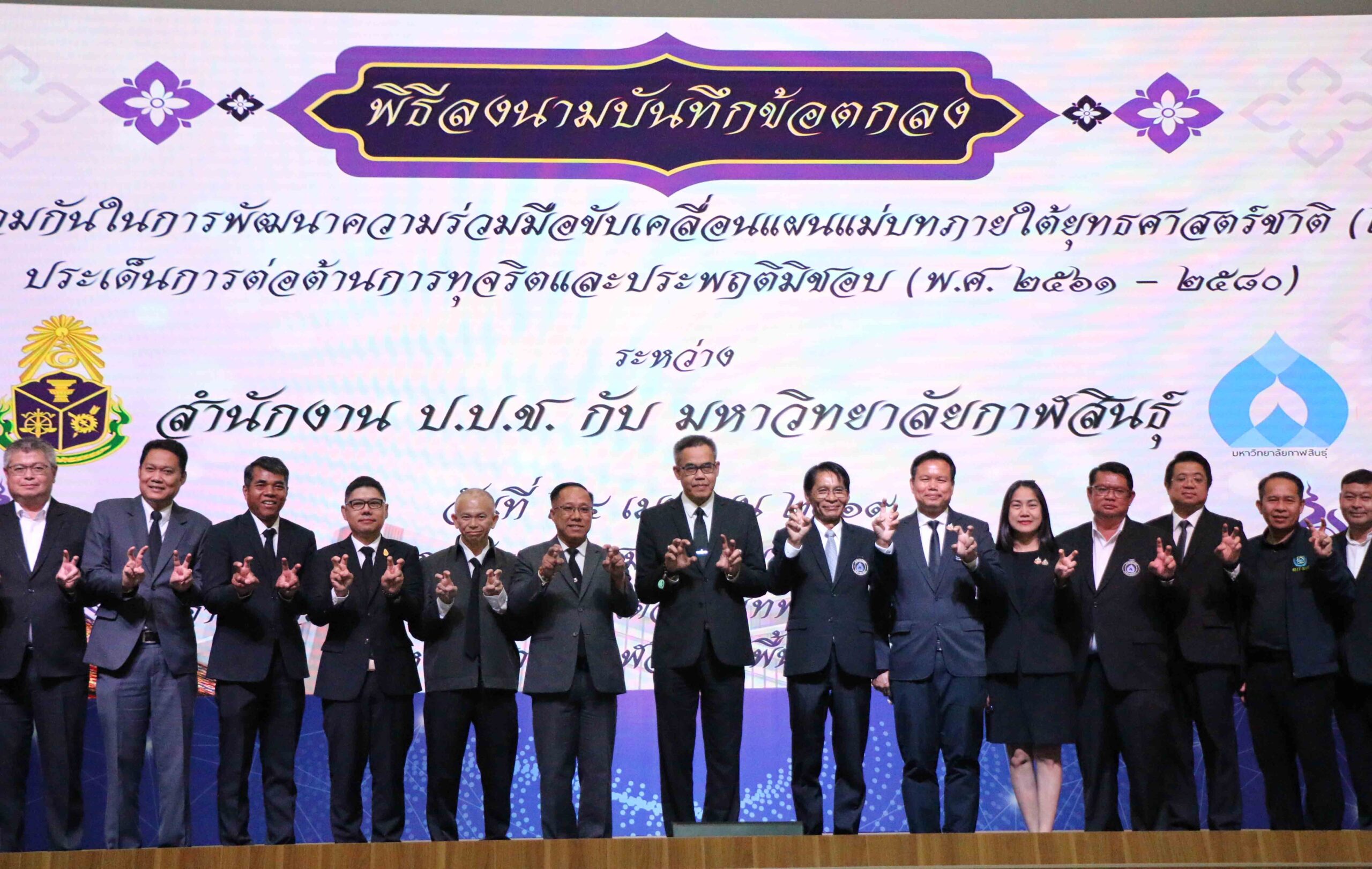 ป.ป.ช.จับมือมหาวิทยาลัยกาฬสินธุ์ ลงนามในบันทึกข้อตกลง เพื่อร่วมกันในการพัฒนาความร่วมมือขับเคลื่อนแผนแม่บทภายใต้ยุทธศาสตร์ชาติ (21) ประเด็น การต่อต้านการทุจริตและประพฤติมิชอบ (พ.ศ.2561-2580) โดยการนำกฎหมาย ป.ป.ช. บรรจุเข้าในหลักสูตรการศึกษาของสาขาวิชา นิติศาสตร์