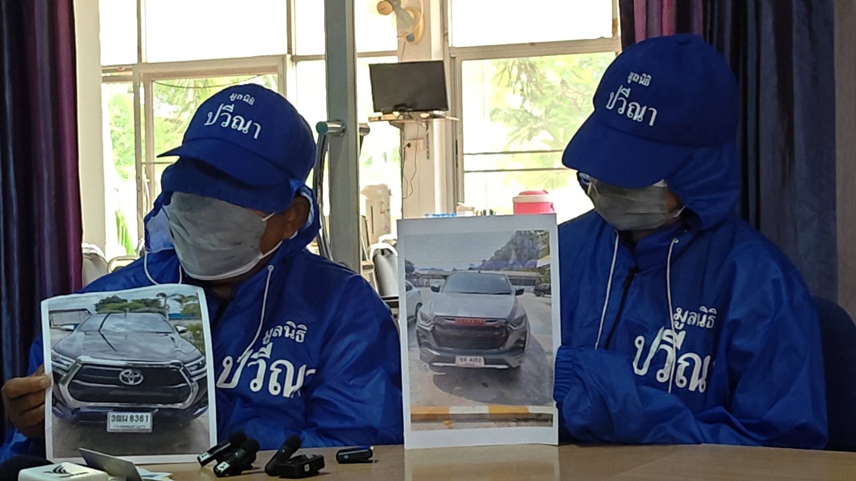 รายที่ 2 จ.สระบุรีด้านน.ส.บี (นามสมมุติ) อายุ 41 ปี ชาวจ.พระนครศรีอยุธยา กล่าวว่า ตนผ่อนรถกระบะอีซูซุ ดีแม็ก ทะเบียน ขน 4052 จ.อุดรธานี อยู่กับไฟแนนซ์ เดือนละ 13,000 บาท โดยผ่อนมา 3 ปี และยังเหลือผ่อนอีก 4 ปี ซึ่งตนมีอาชีพค้าขายผลไม้ จะใช้รถขนผลไม้จากภาคเหนือมาขายที่ตลาดสี่มุมเมือง ก่อนหน้านี้ตนได้จำนำรถไว้ 100,000 บาท เพราะเศรษฐกิจไม่ดีหมุนเงินไม่ทัน และทางคนที่รับจำนำรายแรกต้องการเงินคืนด่วน ตนได้ไปเจอ เพจเฟซบุ๊กชื่อ Hiatn40 รับจำนำรถยนต์รับไถ่ถอนรถติดจำนำออนไลน์ “รับจำนำรถทุกชนิด รับเปลี่ยนย้ายที่จอด รับไถ่ถอนรถไฟแนนซ์ยึดไปแล้ว” จึงติดต่อไปเพื่อกู้เงินมาไถ่ถอนและรับจำนำรถต่อก่อนจะทำสัญญากู้เงิน 150,000 บาท โดยส่งทางไลน์ และนัดรับเงินส่งรถกันในช่วงบ่ายวันที่ 19 เม.ย.69 ที่หน้าเซเว่น สาขาหน้าพระลาน จ.สระบุรี วันนั้นมีผู้ชายขับรถกระบะโตโยต้า วีโว่ สีดำมา ซึ่งเป็นรถของ น.ส.บี อ้างว่าชื่อ “เฮียต้น” และมีผู้หญิงนั่งมาด้วย ทางเฮียต้นได้มอบเงินให้ 100,000 บาท และตนได้ส่งเงินให้คนที่จำนำรถคนแรกไปก่อนเพื่อนไถ่ถอน จากนั้นเฮียต้นบอกว่า ให้ขับรถตามกันไปนัดเจอที่รังสิตเดี๋ยวจะให้เงินที่เหลืออีก 50,000 บาท ตนได้ขับรถตามเฮียต้นและผู้หญิงที่ขับรถกระบะของตนจากสระบุรีเพื่อมุ่งหน้ามาที่รังสิต แต่ระหว่างทางเกิดคลาดกันตนจึงโทรศัพท์หาเฮียต้นก็บ่ายเบี่ยงอ้างว่าไม่สบายต้องไปโรงพยาบาลและหมอให้แอดมิดวันนี้ไปไม่ได้แล้ว ตนเห็นผิดสังเกตไม่น่าไว้วางใจแล้ว จึงรีบติดต่อญาติหาเงิน 100,000 บาทแล้วโทรนัดกับเฮียต้นเพื่อจะไปไถ่เอารถคืน ทีแรกเฮียต้นก็รับปากจะมาเจอกันที่รังสิตในวันที่ 20 เม.ย. แต่ตนไปรอทั้งวันก็ไม่มีวี่แววและไม่สามารถติดต่อกับเฮียต้นได้เลยจึงรู้ตัวว่าถูกหลอก จากนั้นตนได้ตรวจสอบทะเบียนรถกระบะที่เฮียต้นขับมาเจอ ปรากฎว่ามีชื่อเจ้าของอยู่ในพื้นที่สภ.คลองห้า จึงเดินทางไปพบตำรวจสภ.คลองห้า ในวันที่ 22 เม.ย.69 และได้พบกับน.ส.เอ ที่มาแจ้งความ จึงมารู้ภายหลังว่าเพจที่ติดต่อทางเพจเฟซบุ๊กนั้นเป็นเพจเดียวกับของน.ส.เอ และพฤติกรรมของเฮียต้นหรือคนรับจำนำรถเป็นแบบเดียวกัน ทั้งสองจึงชักชวนกันมาร้องขอความช่วยเหลือจากมูลนิธิปวีณาฯ น.ส.เอ และน.ส.บี กล่าวว่า ตนทั้งสองตั้งใจทำมาหากินด้วยน้ำพักน้ำแรงเก็บเงินสู้ชีวิต แต่กลับมาเจอมิจฉาชีพหลอกเชิดเอารถหายไป ไม่รู้ว่ารถของตนทั้งสองจะถูกนำไปชำแหละหรือถูกส่งขายไปประเทศเพื่อนบ้านแล้วหรือไม่ ขณะที่ตนทั้งสองยังต้องก้มหน้าก้มตาหาเงินใช้หนี้ไฟแนนซ์ แต่ไม่ได้ใช้รถเพราะมิจฉาชีพหลอกเชิดเอารถไป 