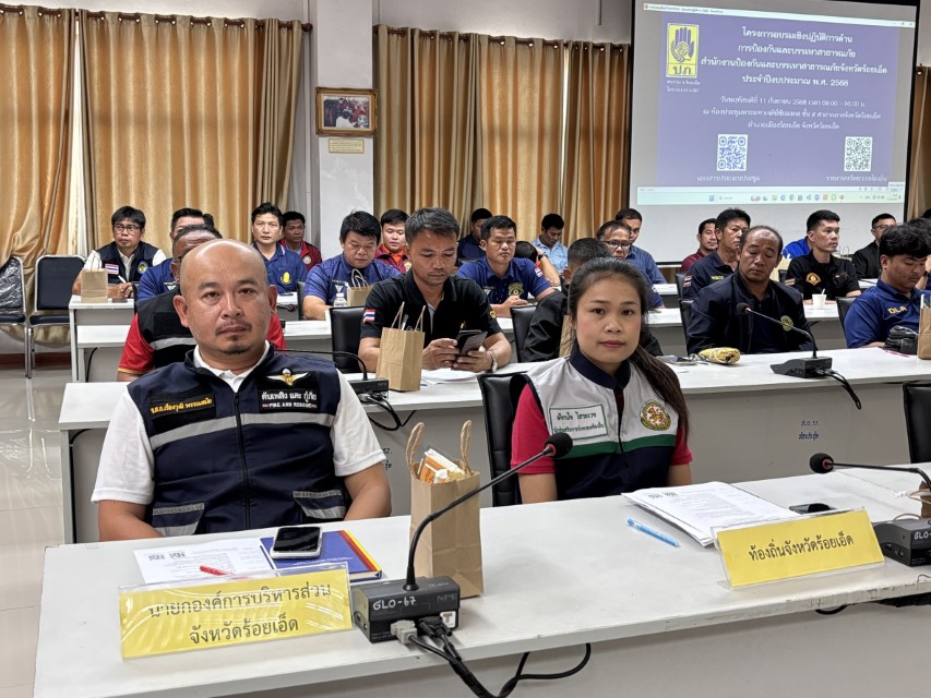 11 กันยายน 2568 ที่ ห้องประชุมพระมหาเจดีย์ชัยมงคล ชั้น 5 ศาลากลางจังหวัดร้อยเอ็ดอำเภอเมือง จังหวัดร้อยเอ็ดิ นายชัชวาลย์ เบญจสิริวงศ์ ผู้ว่าราชการจังหวัดร้อยเอ็ด มอบหมายให้ นายไพโรจน์ จิตจักร์ ปลัดจังหวัดร้อยเอ็ด เป็นประธานในพิธีเปิดโครงการอบรมเชิงปฏิบัติการด้านการป้องกันและบรรเทาสาธารณภัยประจำปีงบประมาณ พ.ศ. 2568 โดยมี นายธรณิศ เทพแพงตา หัวหน้าสำนักงานป้องกันและบรรเทาสาธารณภัยจังหวัดร้อยเอ็ด กล่าวรายงานวัตถุประสงค์การจัดโครงการ ซึ่งมี กลุ่มเป้าหมายได้แก่เจ้าหน้าที่งานป้องกันและบรรเทาสาธารณภัยขององค์กรปกครองส่วนท้องถิ่นในพื้นที่จังหวัดร้อยเอ็ด จำนวน 203 แห่ง เข้ารับการอบรม