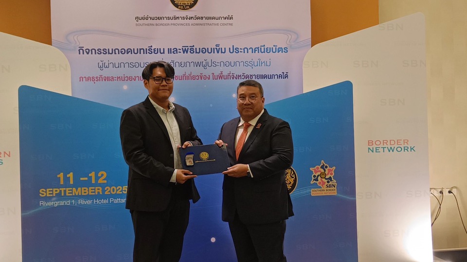 12 กันยายน ที่ โรงแรมริเวอร์ไซด์ จังหวัดปัตตานี พ.ต.ท.วรรณพงษ์ คชรักษ์ เลขาธิการศูนย์อำนวยการบริหารจังหวัดชายแดนภาคใต้ (ศอ.บต.) เป็นประธานในพิธีมอบเข็มและประกาศนียบัตรแก่ผู้เข้ารับการอบรมหลักสูตร “Southern Border Business Network (SBN)” หรือ หลักสูตรการพัฒนานักธุรกิจชายแดนใต้ รุ่นที่ 1 และรุ่น Plus. ซึ่งกิจกรรมในวันนี้มีขึ้นเพื่อถอดบทเรียนและแสดงความยินดีกับผู้สำเร็จการอบรมหลักสูตร SBN ซึ่งเป็นความร่วมมือระหว่าง ศอ.บต. และเครือข่ายนักธุรกิจในพื้นที่ โดยมี ร.ต.อ.ปิยะ รักสกุล รองเลขาธิการ ศอ.บต. และ น.อ.จักรพงษ์ อภิมหาธรรม ผู้อำนวยการกองส่งเสริมและสนับสนุนงานพัฒนาฝ่ายพลเรือน ศอ.บต. เข้าร่วมในพิธีด้วย