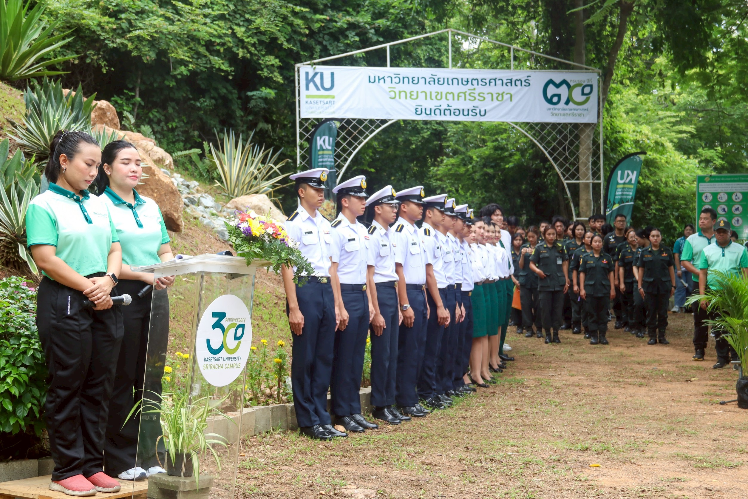ดร.วรยศ ละม้ายศรี ผู้ช่วยอธิการบดีวิทยาเขตศรีราชา กล่าวรายงานวัตถุประสงค์ของการจัดกิจกรรมในครั้งนี้ เพื่ออนุรักษ์ทรัพยากรธรรมชาติ ฟื้นฟูพื้นที่สีเขียว และส่งเสริมจิตสำนึกด้านสิ่งแวดล้อมในทุกภาคส่วนทั้งหน่วยงานภาครัฐ เอกชน ประชาชนในพื้นที่ และนิสิตนักศึกษา เข้าร่วมกิจกรรมกว่า 400 คน โดยกันปลูกต้นไม้กว่า 400 ต้น ได้แก่ ต้นพะยอม และต้นทองอุไร เพื่อฟื้นฟูสภาพแวดล้อมของพื้นที่เขาน้ำซับให้กลับมาเป็นพื้นที่ป่าที่สมบูรณ์อีกครั้ง