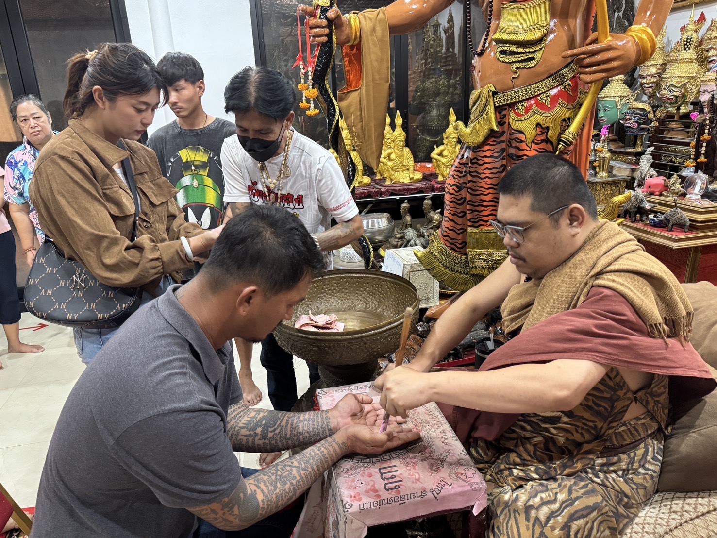 โดยวันนี้ได้มี มิสเตอร์ เคน อายุ 36 ปี นักธุรกิจชาวจีนที่มีความศรัทธาในตัวอาจารย์ฤาษีเณร ธาตุพุทธคุณ ได้เดินทางมาพร้อมครอบครัวและเพื่อนนำรถ bmw ป้ายแดงจำนวน 2 คันและลง นะ พระลักษณ์หน้าทองและเจิมมือเปิดดวงเศรษฐีเพื่อความเป็นสิริมงคลและยังได้้เชิญชวนชาวจีนที่มาเที่ยวเมืองไทยให้มาไหว้พ่อแก่ที่อาศรมฤาษีเณรแห่งนี้อีกด้วยก่อนกลับประชาชนที่มายังอาศรมยังได้ส่องอ่างน้ำมนต์บนศาลาบุญช่วยเพื่อนำเลขไปเสี่ยงโชคโดยเลขในอ่างน้ำมนต์ ได้แก่ 1 2 3 4 5 6 โดยเลขเวียนจับกันเรียกว่าเทวะบันดาล