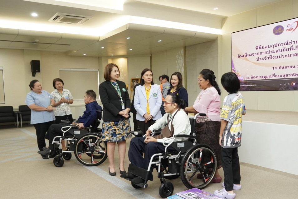 19 กันยายน 2568 ที่ห้องประชุมเปรื่อง อนุชวานิช โรงพยาบาลกาฬสินธุ์ พญ.จารุพรรณ มโนสิทธิศักดิ์ ผู้อำนวยการโรงพยาบาลกาฬสินธุ์ เป็นประธานในพิธีมอบอุปกรณ์ช่วยเหลือผู้พิการ อันเนื่องมาจากการประสบภัยที่เกิดจากการใช้รถใช้ถนน ประจำปีงบประมาณ พ.ศ.2568 จำนวน 2 ราย ซึ่งจัดขึ้นโดยความร่วมมือระหว่างสำนักงานขนส่งจังหวัดกาฬสินธุ์ สำนักงานพัฒนาสังคมและความมั่นคงของมนุษย์จังหวัดกาฬสินธุ์ และโรงพยาบาลกาฬสินธุ์ โดยงานกายอุปกรณ์ กลุ่มงานเวชกรรมฟื้นฟู นำโดย แพทย์หญิงนฎา จันทไทย หัวหน้ากลุ่มงานเวชกรรมฟื้นฟู และงานการพยาบาลชุมชน เพื่อให้ผู้ป่วยผู้พิการ มีชีวิตความเป็นอยู่ที่ดีขึ้น ช่วยเหลือตัวเองได้ และสามารถดำรงชีพในสังคมได้อย่างปกติ โดยมีหัวหน้าส่วนราชการ และหน่วยงานที่เกี่ยวข้องเข้าร่วมกิจกรรม
