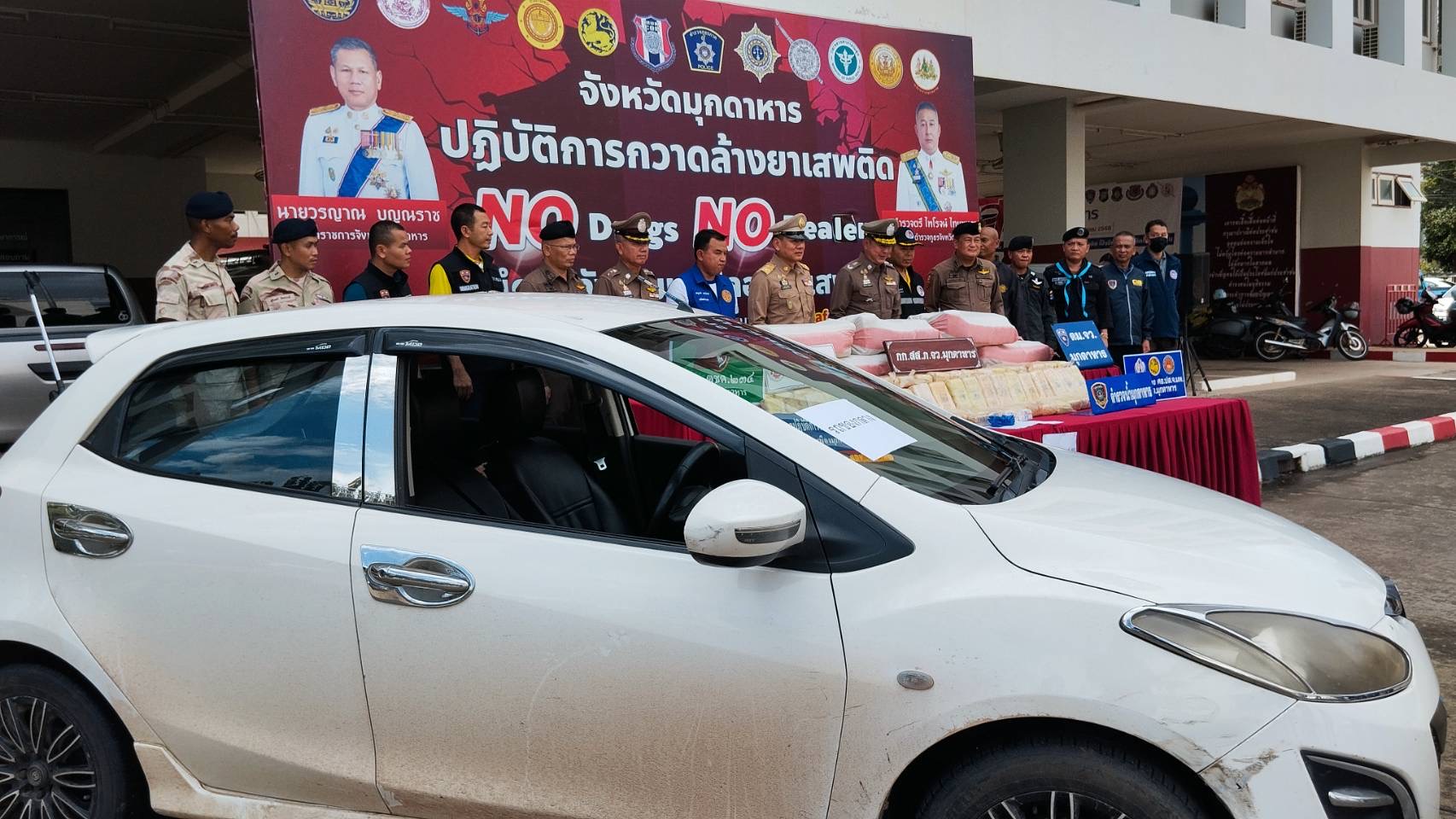 จนกระทั่ง วันที่ 24 กันยายน 2568 ช่วงเวลาประมาณ 22:00 น. – 23.00 น. จะมีขบวนการขนยาเสพติดจำนวนมากใช้เส้นทางจาก อ.เมืองมุกดาหาร ผ่านไปทาง อ.นิคมคำสร้อย รถยนต์คันที่ใช้ขนยาเสพติดคือ รถยนต์เก๋ง ยี่ห้อมาสด้า รุ่นมาสด้า 2 สีขาว ทะเบียน กท 3565 กาฬสินธุ์ เมื่อรับทราบข้อมูลแล้ว พ.ต.ท.เดชาฯ จึงได้รายงานให้ผู้บังคับบัญชาทราบแล้ว สั่งการให้วางแผนจับกุม ตามนโยบาย “No Drugs No Dealers” “Seal Stop Safe” wละ “P4 Spider Web” จึงแจ้งทุก สภ. ในเขตพื้นที่จังหวัดมุกดาหารให้ตั้งจุดสกัด จัดวางกำลังตามเส้นทาง กระทั่งเวลา 22.30 น.