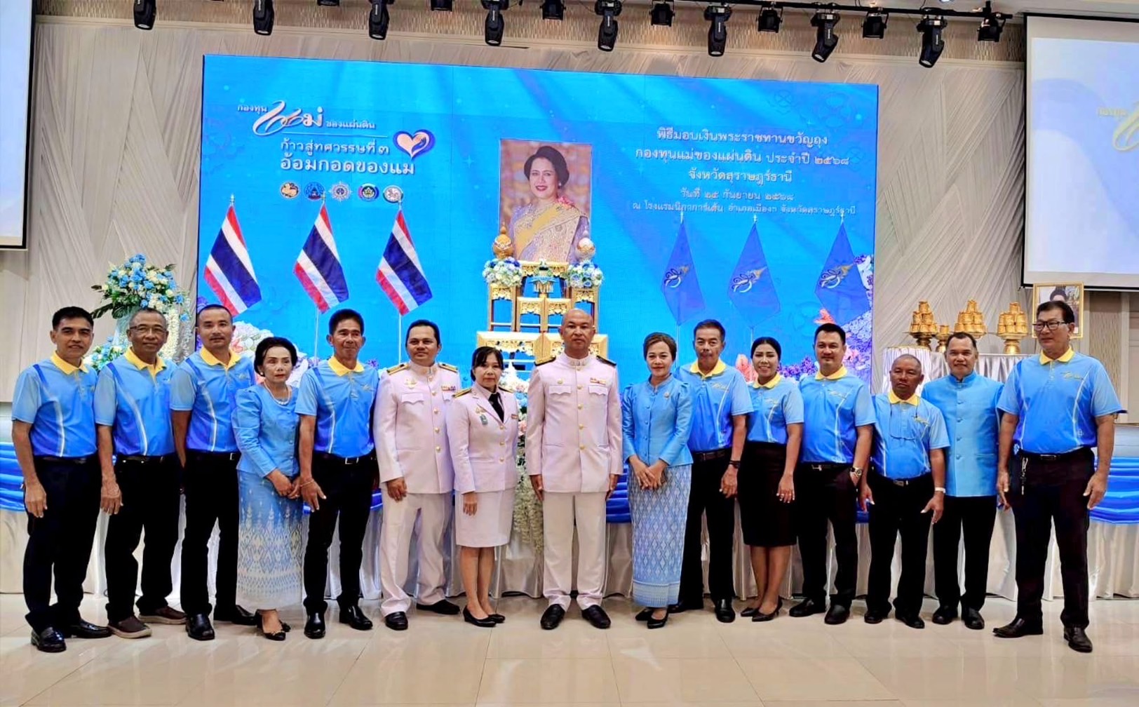 นางสาวสุรัตน์ ไชยธวัช พัฒนาการอำเภอเกาะสมุย ผู้อำนวยการกองสวัสดิการสังคม หัวหน้าส่วนราชการ พนักงานเทศบาล คณะกรรมการชุมชนเทศบาลนครเกาะสมุย และเจ้าหน้าที่ที่เกี่ยวข้อง ร่วมพิธีมอบเงินพระราชทานขวัญถุงกองทุนแม่ของแผ่นดินจังหวัดสุราษฎร์ธานี ประจำปี 2568 เพื่อเป็นสิริมงคลและขวัญกำลังใจในการหลอมรวมความ สามัคคีเพื่อแก้ไขปัญหายาเสพติดในหมู่บ้าน โดยมีนายบันดาล สถิรชวาล รองผู้ว่าราชการจังหวัดสุราษฎร์ธานี เป็นประธานในพิธีฯ
