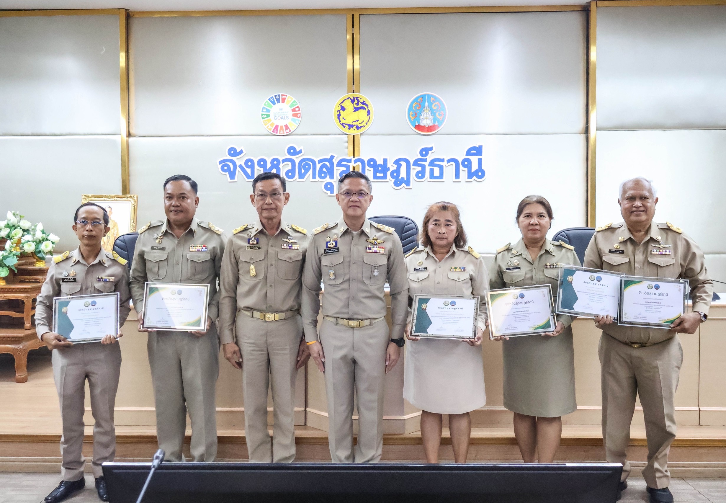 ก่อนเริ่มการประชุมได้มีพิธีมอบเกียรติบัตรแก่องค์กรปกครองส่วนท้องถิ่นที่ได้รับรางวัล “ตลาดดีมีมาตรฐานระดับจังหวัด” มอบเกียรติบัตรผลการประเมินประสิทธิภาพขององค์กรปกครองส่วนท้องถิ่น ประจำปี 2568 มอบประกาศนียบัตร “ท้องถิ่นอำเภอดีเด่นระดับจังหวัด” ประจำปี 2568 และมอบประกาศเกียรติคุณแก่ข้าราชการผู้มีความประพฤติเรียบร้อยและปฏิบัติราชการด้วยความวิริยะอุตสาหะ จนครบเกษียณอายุราชการ 20 ปี โดยผู้ว่าราชการจังหวัดสุราษฎร์ธานี ได้กล่าวให้โอวาทและแสดงความยินดีต่อผู้ได้รับเกียรติบัตรและองค์กรปกครองส่วนท้องถิ่น เพื่อเป็นขวัญและกำลังใจในการปฏิบัติงานต่อไป