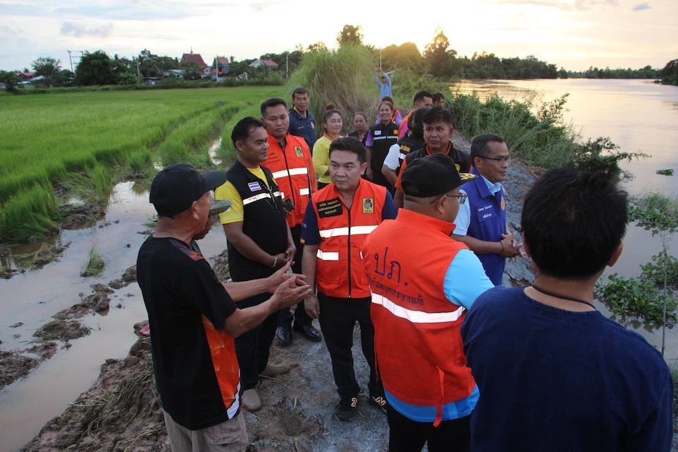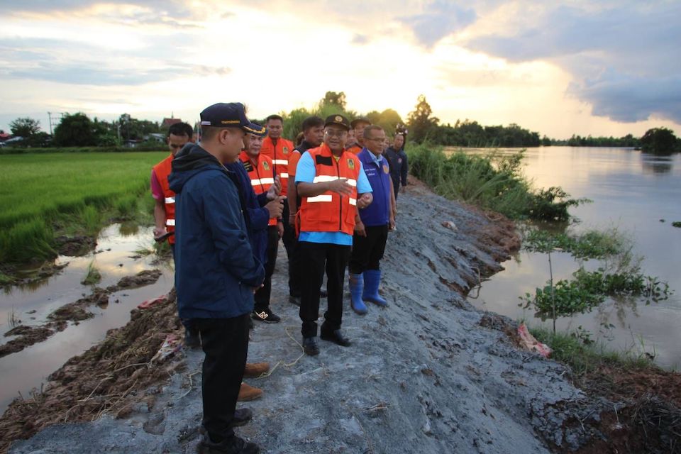 โดย นายชัชวาลย์ เบญจสิริวงศ์ ผู้ว่าราชการจังหวัดร้อยเอ็ด กล่าวว่า จากการตรวจสอบ พบว่าตลิ่งได้รับความเสียหายแล้วบางส่วน กินพื้นที่เข้ามาประมาณร้อยละ 30–40 โดยมีจุดเสี่ยงจำนวน 2 จุดที่อยู่ใกล้พื้นที่ทำการเกษตรและที่อยู่อาศัย เบื้องต้นองค์กรปกครองส่วนท้องถิ่นได้ดำเนินการใช้ซีเมนต์ดิบป้องกันการกัดเซาะเพิ่มเติมแล้ว ทางท้องถิ่นและผู้นำชุมชนมีความเห็นร่วมกันว่าเพื่อป้องกันความเสียหายรุนแรง อาจต้องขอความร่วมมือจากเจ้าของที่นา เพื่อใช้พื้นที่ประมาณ 50 เมตรในการทำคันดินเสริมให้กว้างขึ้น ป้องกันไม่ให้คันกั้นน้ำขาดหรือน้ำไหลเข้าทำลายพื้นที่เกษตรกรรม ซึ่งมีการหารือร่วมกันระหว่างรองนายก อบต. และอำเภอทุ่งเขาหลวง เพื่อจัดสรรงบประมาณ ทั้งจากงบของท้องถิ่น และเงินทดรองราชการในอำนาจของผู้ว่าราชการจังหวัด โดยเน้นให้การดำเนินงานไม่ซ้ำซ้อนและสอดคล้องตามหลักวิชาการ