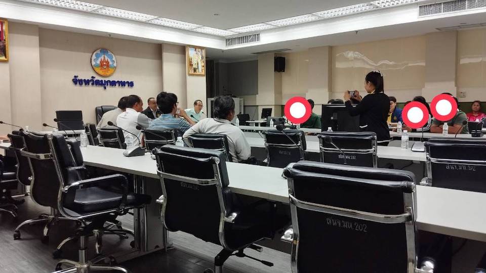 1 ตุลาคม 2568 ตัวแทนกลุ่มชาวบ้าน บ้านด่านยาว หมู่ที่ 8 ต.นากอก อ.นิคมคำสร้อย จ.มุกดาหาร นำโดย นายสำอางค์ คำนนท์ พร้อมชาวบ้านประมาณ 20 คน ได้มาทวงถามเรื่องเงินค่าชดเชยครอบครัวละ 30,000 บาท ในการก่อสร้างโครงการโรงไฟฟ้าพลังงานลม ของบริษัท อีสานพลังงานสะอาด ที่ศูนย์ดำรงธรรมจังหวัดมุกดาหาร โดยมี นายนำโชค ราตรีโชติ ผู้อำนวยการกลุ่มงานศูนย์ดำรงธรรมจังหวัดมุกดาหาร นายสมนึก ศรีทองคำ ผอ.ส่วนทรัพยากรธรรมชาติและสิ่งแวดล้อมจังหวัดมุกดาหาร พร้อมเจ้าหน้าที่ที่เกี่ยวข้อง มาชี้แจงและประชุมชี้แจงเกี่ยวกับข้อเรียกร้องของชาวบ้านที่ได้ยื่นเรื่องไว้