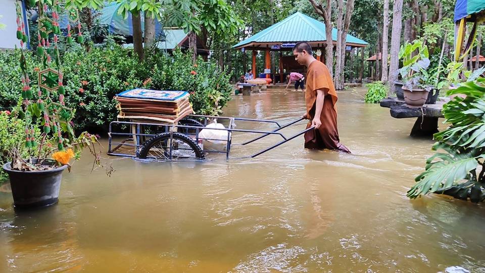 1 ตุลาคม 2568 หลังมีฝนตกหนักติดต่อกันมาหลายวัน ประกอบกับพายุบัวลอยที่พัดกระหน่ำ ส่งผลทำให้ปริมาณน้ำในอ่างเก็บน้ำทั้ง 16 แห่ง ในพื้นที่ จ.ศรีสะเกษ มีปริมาณเพิ่มสูงขึ้น และเกินความจุเก็บกัก 100% ไหลล้นสปิลเวย์ แล้ว จำนวน 15 แห่ง โดยมวลน้ำดังกล่าวได้ไหลลงไปตามลำห้วยสาขาต่างๆ โดยเฉพาะที่ลำห้วยวะ ปริมาณน้ำได้ไหลล้นฝายน้ำล้น ทำให้มวลน้ำไหลเข้าท่วมวัดป่าดอนแก้วห้วยวะ บ้านโนนสำโรง หมู่ที่ 7 ต.กล้วยกว้าง อ.ห้วยทับทัน จ.ศรีสะเกษ ปริมาณน้ำท่วมสูงประมาณ 50-80 เซนติเมตร พระ เณร รวมทั้งชาวบ้านต่างเร่งรีบช่วยกันขนย้ายสิ่งของ อาสนะ จีวร และของใช้จำเป็นขึ้นที่สูง เพื่อไม่ให้ถูกน้ำท่วมได้รับความเสียหาย โดยแนวโน้มคาดว่าประมาณน้ำจะเพิ่มสูงขึ้นอีก เพราะมีน้ำที่ท่วมจาก จ.สุรินทร์ และน้ำจากเทือกเขาพนมดงรัก ชายแดนไทย-กัมพูชา ไหลเข้ามาสมทบอีก