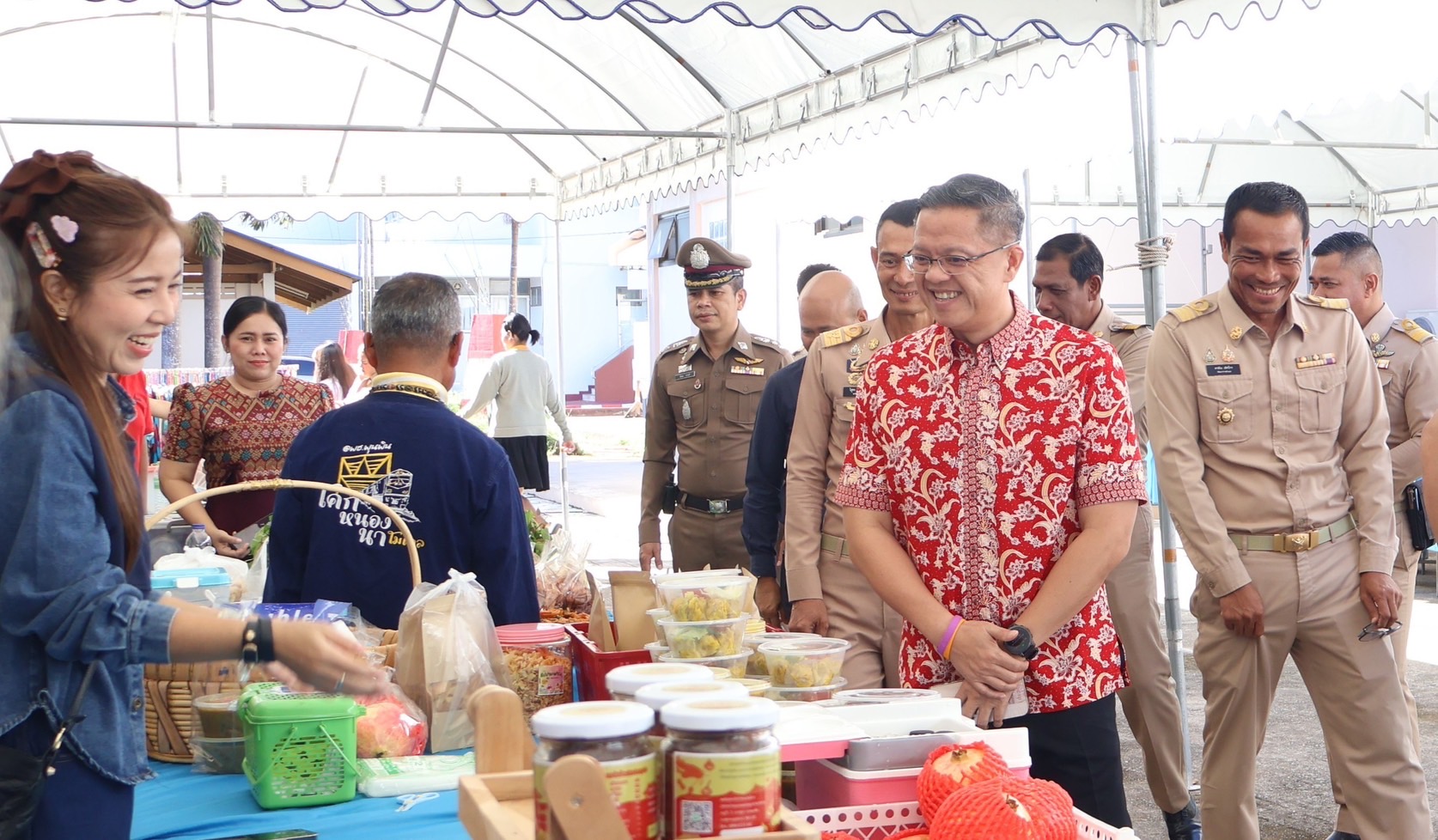 ผู้ว่าราชการจังหวัดสุราษฎร์ธานีได้เดินเยี่ยมชมและอุดหนุนสินค้าจากผู้ประกอบการที่นำผลิตภัณฑ์มาจำหน่ายกว่า 30 ร้านค้า พร้อมให้คำแนะนำแนวทางการพัฒนาคุณภาพสินค้าให้ได้มาตรฐานมากขึ้น ซึ่งจะเป็นการสร้างรายได้เสริม ยกระดับคุณภาพชีวิต และเสริมเศรษฐกิจชุมชนให้เข้มแข็ง