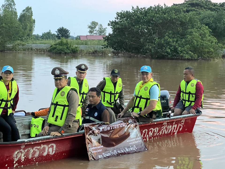 จากนั้นไปตรวจเยี่ยมมอบสิ่งของ ให้กำลังใจ ข้าราชการตำรวจในสังกัดฯ ที่มีบ้านพักอยู่ในพื้นที่ประสบอุทกภัย จำนวน 13 นาย และ ประชาชน กลุ่มเปราะบาง ผู้ประสบภัย ในพื้นที่ อ.อินทร์บุรี