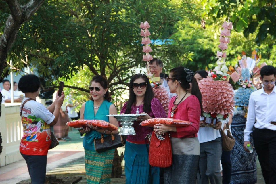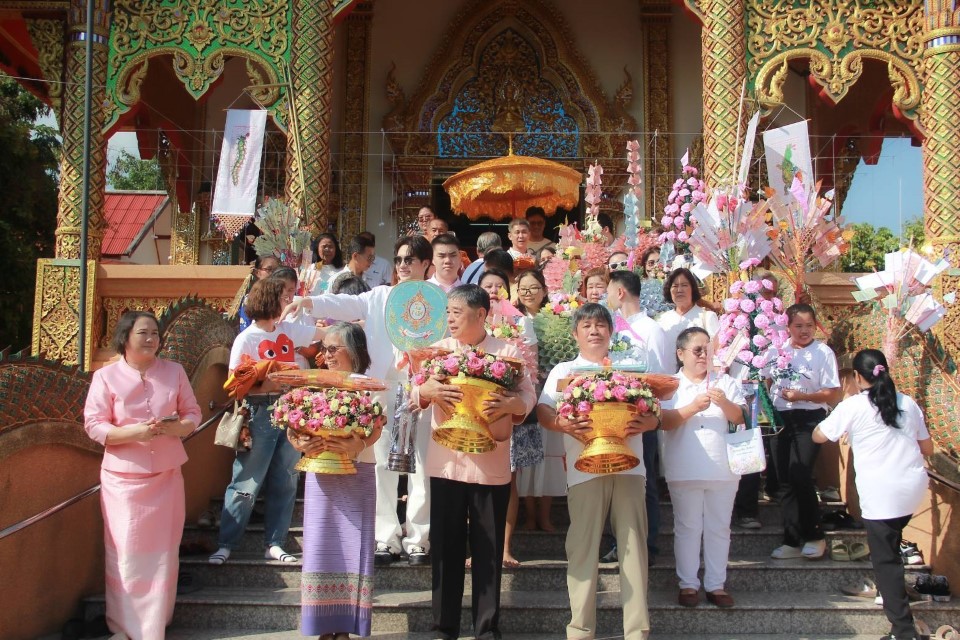 บรรยากาศภายในงานเป็นไปอย่างคึกคัก มีขบวนแห่ต้นกฐิน ผ้าไตร และเครื่องอัฐบริขาร เคลื่อนจากบ้านผู้ใหญ่บ้านทุ่งสะโตกไปยังวัดท่าสา ระยะทางราว 200 เมตร ท่ามกลางเสียงกลองยาว และขบวนแฟนคลับที่ร่วมเดินแห่รอบพระวิหาร 3 รอบ ก่อนถวายต้นกฐินแด่พระครูวิสุทธิธรรมานุสิฐ์ เจ้าอาวาสวัดท่าสา ในการนี้ นายเฉลิมชาติ และนางจุรีรัตน์ จารุจิตรานนท์ บิดา–มารดาของตี๋ ธนพล ร่วมเป็นประธานทอดถวายกฐิน พร้อมประกอบพิธีสืบชะตาเพื่อความเป็นสิริมงคล