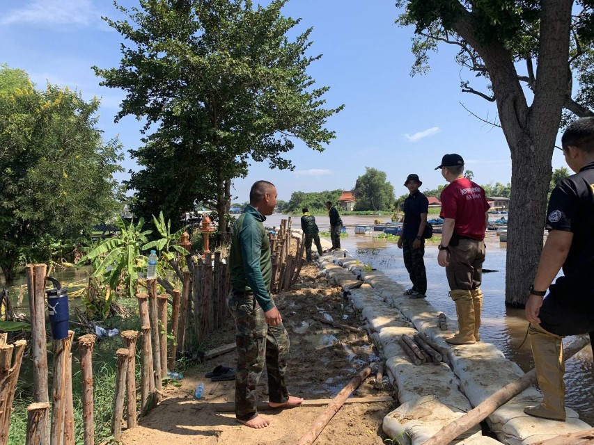 จากนั้นได้ลงพื้นที่ตรวจดูแนวคันดินกั้นน้ำบริเวณหมู่ที่ 5 ตำบลโผงเผง พร้อมพูดคุยให้กำลังใจเจ้าหน้าที่ทหาร ที่กำลังปฏิบัติหน้าที่ในการเฝ้าระวัง และเสริมแนวป้องกันน้ำอย่างต่อเนื่อง