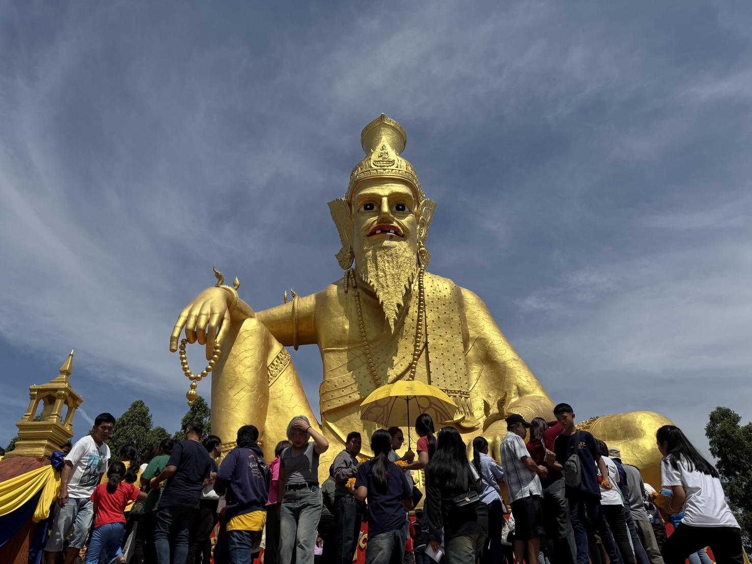 พร้อมมอบเงินให้กับอำเภอบางไทร 100,000 บาทเพื่อนำไปช่วยเหลือประชาชนที่ถูกน้ำท่วมในพื้นที่ และการเชิดมังกรทองและสิงโตคณะหลวงพ่อแป๊ะ วัดสว่างอารมณ์ จ.นครปฐมมีการรำอวยพรก่อนเริ่มพิธีสงฆ์โดยมีพระเกจิชื่อดังเข้าร่วมหลายองค์โดยมีหลวงพ่อแป๊ะ วัดสว่างอารมณ์ จ.นครปฐม พระอาจารย์ราชัญ อริโย นักเทศน์ชื่อดัง หลวงพ่อวิชัย วัดโพแตงใต้ พระอาจารย์เก่ง วัดท่าเสา ครูบาศิริพงษ์ จ.ลำปาง พระอาจารย์กิตติคม นะเมตตา