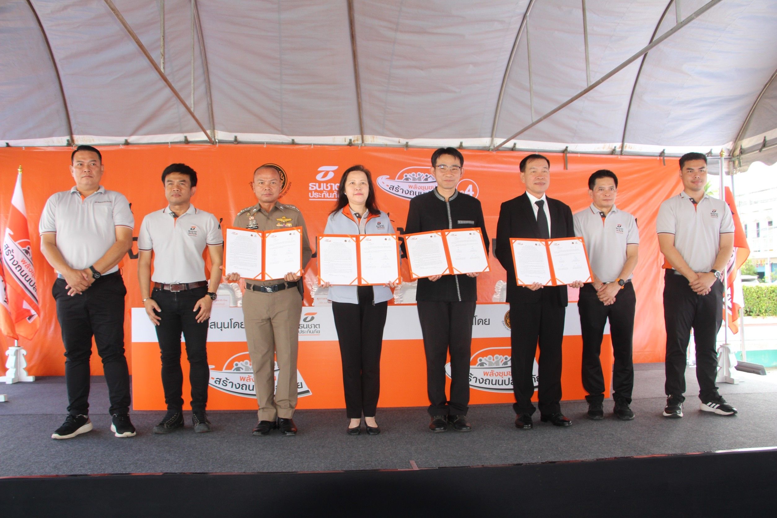 31 ตุลาคม 2568 ที่ ลานกีฬาเทศบาลตำบลสุวรรณภูมิ อำเภอสุวรรณภูมิ จังหวัดร้อยเอ็ด นายชัชวาลย์ เบญจสิริวงศ์ ผู้ว่าราชการจังหวัดร้อยเอ็ด เป็นประธานในพิธีลงนามบันทึกความร่วมมือโครงการ “พลังชุมชนสร้างถนนปลอดภัย ปี 4” โดยมีนางสาวสภาวรรดี พัฒนสิน Executive Head – Customer Service Center บริษัท ธนชาตประกันภัย จำกัด (มหาชน) พร้อมด้วยหัวหน้าส่วนราชการ นายอำเภอสุวรรณภูมิ ผู้นำท้องที่ท้องถิ่น และประชาชน เข้าร่วม