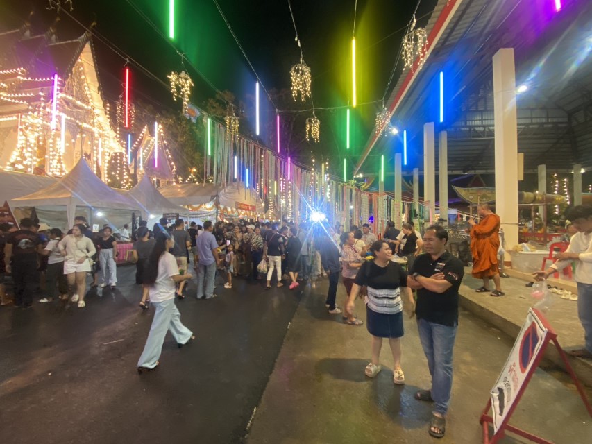 ผู้สื่อข่าวรายงานว่าช่วงเย็นที่ผ่านมาพื้นที่เมืองสุราษฎร์ฯ ได้มีฝนตกลงมาอย่างหนัก แต่มาแล้งแบบขาดเม็ดในช่วงใกล้ค่ำทำให้ประชาชนออกมาร่วมรักษาประเพณีอย่างคึกคัก ซึ่งในคืนวันที่ 5 พ.ย. 2568 วันเพ็ญขึ้น 15 ค่ำเดือน 12 เกิดปรากฏการณ์ “ซูเปอร์ฟูลมูน” ดวงจันทร์เต็มดวงโคจรมาอยู่ในตำแหน่งที่ใกล้โลกที่สุดในรอบปี อยู่ห่างเพียง 356,966 กิโลเมตร เริ่มสังเกตได้หลังดวงอาทิตย์ลับขอบฟ้า ตั้งแต่เวลา 17.30 น. ดวงจันทร์จะปรากฏใหญ่กว่าปกติ สว่างเด่นชมได้ตลอดทั้งคืน