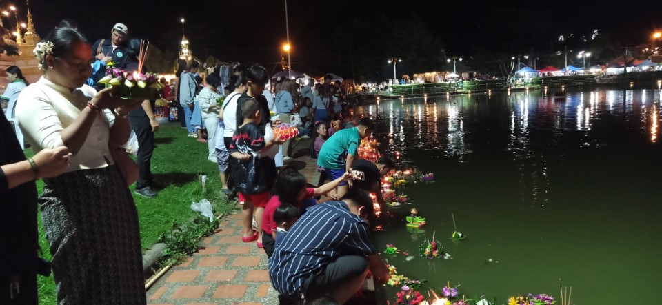 กิจกรรมงานลอยกระทงของตำบลปางหมู อ.เมือง จ.แม่ฮ่องสอน ที่จัดขึ้นในครั้งนี้ ได้ปรับรูปแบบลง มีขบวนแห่กระทงไทใหญ่ทั้ง 12 หมู่บ้าน จากบ้านปางหมู ไปยังสถานที่จัดงานใต้สะพานข้ามแม่น้ำปาย ตรงข้ามโรงเรียนราชประชานุเคราะห์ 59 ก่อนพิธีเปิดงาน รองผู้ว่าราชการจังหวัดแม่ฮ่องสอน และผู้เข้าร่วมงานได้ร่วมยืนสงบนิ่งแสดงความอาลัยสมเด็จพระนางเจ้าสิริกิติ์ พระบรมราชินีนาถ พระบรมราชชนนีพันปีหลวง เป็นเวลา 93 วินาที พร้อมการแปลอักษร “ส.ก.” โดยนักศึกษาจากมหาวิทยาลัยราชภัฏเชียงใหม่ วิทยาเขตแม่ฮ่องสอน เพื่อแสดงความจงรักภักดีและน้อมรำลึกในพระมหากรุณาธิคุณอันหาที่สุดมิได้ มอบรางวัลให้กับหมู่บ้านที่ชนะกระบวนแห่กระทง และมีพิธีทางศาสนา จากนั้นรองผู้ว่าราชการจังหวัดแม่ฮ่องสอน ประชาชนที่มาร่วมงานได้นำกระทงใหญ่ กระทงเล็กไปลอยลงแม่น้ำปาย เพื่อสืบสานและอนุรักษ์ประเพณีที่มีมาช้านาน แสดงวิถีชีวิตและวัฒนธรรมของชุมชนไทยใหญ่จังหวัดแม่ฮ่องสอน
