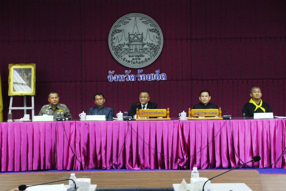 6 พฤศจิกายน 2568 ที่ห้องประชุมพระมหาเจดีย์ชัยมงคล ชั้น 5 ศาลากลางจังหวัดร้อยเอ็ดนายชัชวาลย์ เบญจสิริวงศ์ ผู้ว่าราชการจังหวัดร้อยเอ็ด เป็นประธานการประชุมคณะกรรมการศูนย์อำนวยการจิตอาสาพระราชทาน ประจำปีงบประมาณ พ.ศ. 2569 โดยมีนายพิชัยยา ตุระซอง รองผู้ว่าราชการจังหวัดร้อยเอ็ด นายไพโรจน์ จิตจักร์ ปลัดจังหวัดร้อยเอ็ด พร้อมด้วยหัวหน้าส่วนราชการ นายอำเภอ ผู้บริหารองค์กรปกครองส่วนท้องถิ่น หน่วยงานรัฐวิสาหกิจ ภาคเอกชน และภาคประชาชน เข้าร่วมประชุมอย่างพร้อมเพรียง ในการนี้ พันเอก ธีรพงษ์ โอวาท จิตอาสาพระราชทาน 904 หัวหน้ากลุ่มงานนโยบาย แผน และการข่าว กอ.รมน.จังหวัดร้อยเอ็ด ผู้แทนผู้บัญชาการกองพลทหารราบที่ 6 ผู้แทนผู้บัญชาการมณฑลทหารบกที่ 27 ผู้แทนผู้บังคับการตำรวจภูธรจังหวัดร้อยเอ็ด และรองผู้อำนวยการรักษาความมั่นคงภายในจังหวัดร้อยเอ็ด เข้าร่วมประชุมเพื่อขับเคลื่อนภารกิจจิตอาสาพระราชทานให้เป็นไปด้วยความเรียบร้อยและบรรลุตามวัตถุประสงค์ของศูนย์อำนวยการใหญ่จิตอาสาพระราชทาน